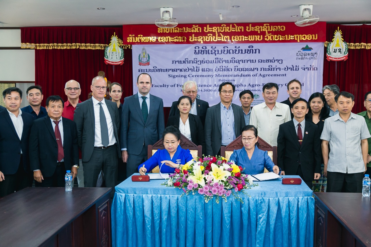ຄະນະວິທະຍາສາດປ່າໄມ້ມະຫາວິທະຍາໄລແຫ່ງຊາດ ແລະ ບໍລິສັດ ບົວລະພາກະສິກຳ–ປ່າໄມ້ ຈຳກັດ ໄດ້ຈັດພິທີເຊັນບົດບັນທຶກການຮ່ວມມືດ້ານວິຊາການເພື່ອເປັນການກໍ່ສ້າງບຸກຄະລາກອນໃຫ້ມີຄວາມຮູ້, ຄວາມສາມາດໃນການປະກອບອາຊີບຂຶ້ນໃນວັນທີ 14 ກຸມພາ 2020 ທີ່ຄະນະວິທະຍາສາດປ່າໄມ້ລະຫວ່າງ ທ່ານນາງ ລັດ ສະໝີ ບຸບຜາ ຄະນະບໍດີຄະນະວິທະ ຍາສາດປ່າໄມ້ ແລະທ່ານນາງ ສຸໄພວັນ ທ່ຽງຈັນໄຊ ຮອງອຳນວຍການບໍລິສັດ ບົວລະພາກະສິກຳ–ປ່າໄມ້ ຈຳກັດ ໂດຍມີ ທ່ານ ປອ ຮຸ່ງເພັດ ຈັນທະວົງ ຮອງອະທິການບໍດີມະຫາວິທະຍາໄລແຫ່ງຊາດ, ທ່ານ Jean–Bernard ເອກອັກຄະລັດຖະທູດອົດສະຕາລີ ປະຈຳ ສປປ ລາວ ພ້ອມດ້ວຍພາກ ສ່ວນທີ່ກ່ຽວຂ້ອງເຂົ້າຮ່ວມ.