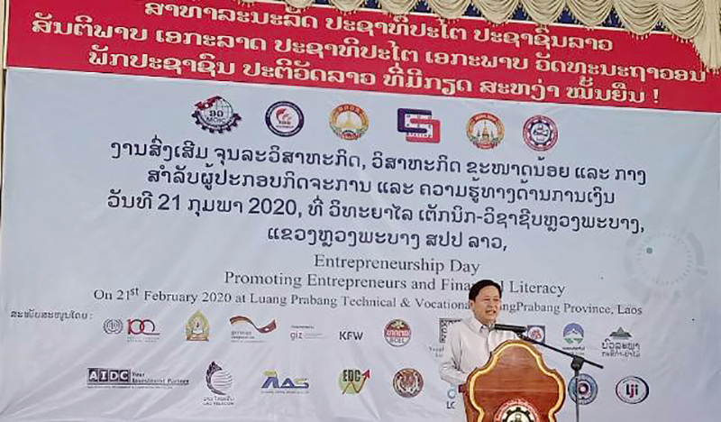 ການຄ້າ ແລະອຸດສາຫະກຳແຫ່ງຊາດລາວໄດ້ຈັດງານສົ່ງເສີມຈຸນລະວິສະຫະກິດ, ວິສະຫະກິດຂະໜາດນ້ອຍ ແລະ ຂະໜາດກາງຂຶ້ນໃນວັນທີ 21 ກຸມພາ 2020 ວິທະຍາໄລເຕັກນິກວິຊາຊີບແຂວງຫຼວງພະບາງ ໂດຍການເຂົ້າຮ່ວມຂອງທ່ານ ສົມຈິດ ອິນທະມິດ ຮອງລັດຖະມົນຕີກະຊວງອຸດສາຫະກຳ ແລະການຄ້າ,ທ່ານ ສຽວ ສະ ຫວາດ ສະແຫວງສຶກສາປະທານທີ່ປຶກສາກິຕິມະສັກສະພາການຄ້າ ແລະ ອຸດສາຫະກຳແຫ່ງຊາດລາວ, ທ່ານ ບຸນທ່ຽງ ສຸລິວັນ ປະທານສະພາການຄ້າແລະອຸດສາຫະ ກຳ ແຂວງຫຼວງພະບາງ, ມີຕາງໜ້າກົມ, ຊ່ຽວຊານວິຊາການ, ຫົວໜ່ວຍທຸລະກິດ, ຜູ້ປະກອບການ, ຄະນະອໍານວຍການໂຮງຮຽນພ້ອມດ້ວຍນັກສຶກສາເຂົ້າຮ່ວມ.