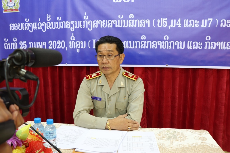 ທ່ານ ນັນຕະໄຊ ອິນທະສອນ ກ່າວໃຫ້ຮູ້ວ່າ: ການສອບເສັງນັກຮຽນເກັ່ງສົກປີ 2019-2020 ມີ ນັກຮຽນຊັ້ນ ປ5, ມ4 ແລະ ມ7 ເຂົ້າຮ່ວມສອບເສັງທັງໝົດ 130 ຄົນ ຈາກ 63 ໂຮງຮຽນໃນທົ່ວແຂວງ, ໃນນັ້ນສຳລັບຊັ້ນ ປ5 ແມ່ນຈະສອບເສັງໃນ 3 ວິຊາຄື: ວິຊາພາສາລາວ, ຄະນິດສາດ ແລະ ວິທະຍາສາດສິ່ງແວດລ້ອມ, ສ່ວນ ຊັ້ນ ມ4 ແລະ ມ7 ແມ່ນມີ 5 ວິຊາ ຄື: ພາສາລາວ-ວັນນະຄະດີ, ຄະນິດສາດ, ເຄມີສາດ, ຟີຊິກສາດ ແລະພາສາອັງກິດ, ຈຸດປະສົງໃນການສອບເສັງນັກຮຽນເກັ່ງໃນຄັ້ງນີ້ແມ່ນເພື່ອຄັດເລືອກເອົານັກຮຽນ ຜູ້ທີ່ມີພອນສະຫວັນທີ່ຜ່ານການ ສອບເສັງໃນລະດັບແຂວງກ້າວໄປ ສູ່ການສອບເສັງນັກຮຽນເກັ່ງໃນ ລະດັບຊາດ ແລະເພື່ອຊຸກຍູ້ໃຫ້ເຂົາເຈົ້າໄດ້ຮັບການສົ່ງເສີມໃຫ້ກາຍເປັນຜູ້ທີ່ເກັ່ງທາງດ້ານວິທະຍາສາດເປັນຊັບພະຍາກອນມະນຸດທີ່ສຳຄັນຂອງຊາດເພື່ອພັດທະນາ ປະເທດຊາດໃຫ້ຈະເລີນຮຸ່ງເຮືອງໃນອະນາຄົດ.