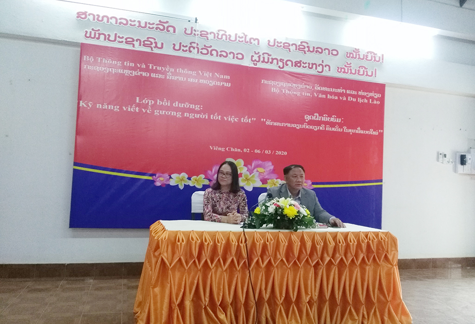 ໃນວັນທີ 2-6 ມີນາ 2020 ສະຖາບັນສື່ມວນຊົນ, ວັດທະນະທໍາ ແລະທ່ອງທ່ຽວລາວຮ່ວມກັບກົມສື່ມວນຊົນກະຊວງ ຖະແຫຼງຂ່າວ ແລະສື່ສານມວນຊົນ ສສ ຫວຽດ ນາມ ໄດ້ຈັດຝຶກອົບຮົມພາຍໃຕ້ຫົວຂໍ້ທັກສະການຂຽນບົດວຽກດີຄົນເດັ່ນໃນຍຸກສື່ແບບໃຫມ່ຂື້ນໂດຍການເຂົ້າຮ່ວມຂອງ ທ່ານ ວິໄລທອງ ສີຊານົນ ຫົວຫນ້າສະຖາບັນສື່ມວນຊົນ, ວັດທະນະທໍາ ແລະທ່ອງທ່ຽວລາວ, ທ່ານ ນາງ ມາຍ ເຮືອງຢາງ ຮອງຫົວຫນ້າກົມສື່ມວນຊົນກະຊວງຖະແຫຼງຂ່າວ ແລະສື່ສານມວນຊົນ ສສ ຫວຽດນາມ, ມີສໍາມະນາກອນສື່ມວນຊົນຈາກ 17 ແຂວງ ແລະພາກສ່ວນຕ່າງໆພາຍໃນນະຄອນຫຼວງເຂົ້າຮ່ວມ.