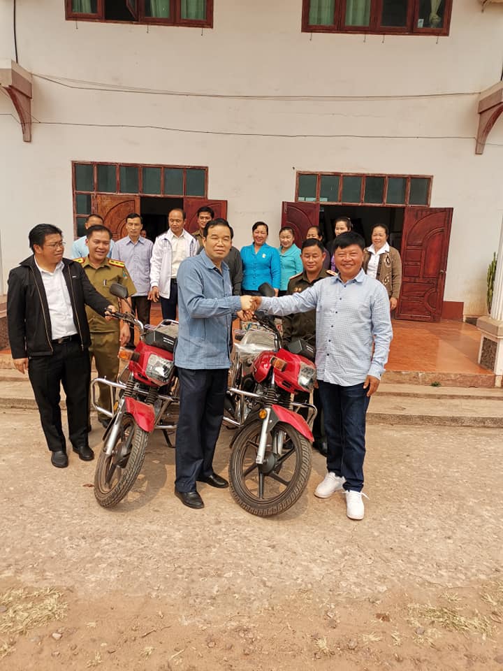 ສໍາລັບຄອມພິວເຕີຈໍານວນ 7 ເຄື່ອງນີ້ມອບໃຫ້ສະຫະພັນແມ່ຍິງເມືອງ 1 ເຄື່ອງ ແລະອີກ 6 ເຄື່ອງແມ່ນມອບໃຫ້ຫ້ອງວ່າການເມືອງ, ສ່ວນລົດຈັກ 2 ຄັນແມ່ນມອບໃຫ້ 2 ກຳລັງ ປກສ , ປກຊ ພາກສ່ວນລະ 1 ຄັນ.