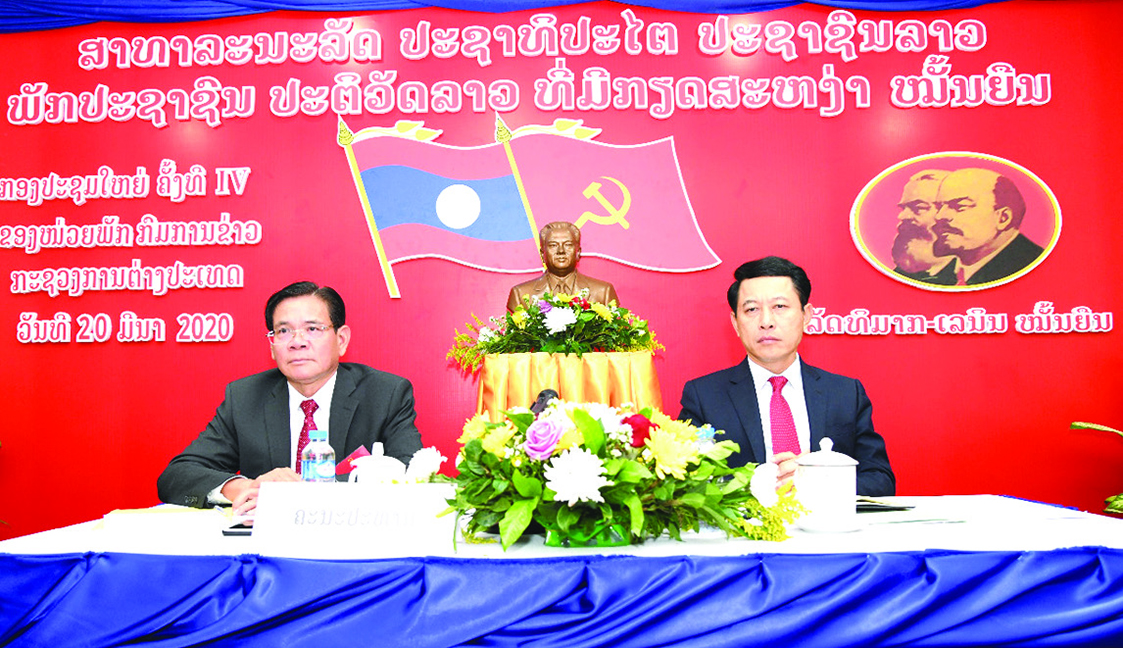 ເມື່ອອາທິດຜ່ານມາທີ່ຫ້ອງປະຊຸມກະຊວງການຕ່າງປະເທດ, ກອງປະຊຸມໃຫຍ່ຄັ້ງທີ IV ຂອງໜ່ວຍພັກກົມການຂ່າວ, ກະຊວງການຕ່າງປະເທດໄດ້ໄຂຂຶ້ນຢ່າງເປັນທາງການ, ໂດຍການໃຫ້ກຽດເປັນປະທານຂອງສະຫາຍ ສະເຫຼີມໄຊ ກົມມະສິດ ກໍາມະການສູນກາງພັກ, ເລຂາຄະນະບໍລິຫານງານພັກກະຊວງການຕ່າງປະເທດ,ບັນ ດາສະຫາຍເລຂາ, ຮອງເລຂາ ແລະຜູ້ຕາງໜ້າໜ່ວຍພັກອ້ອມຂ້າງກະຊວງການຕ່າງປະເທດ, 3 ອົງການຈັດຕັ້ງມະຫາຊົນທີ່ເປັນແຂກຖືກເຊີນ, ສະມາຊິກພັກສົມບູນ, ສະມາຊິກພັກສຳຮອງຂອງກົມການກະຊວງການຕ່າງປະເທດເຂົ້າຮ່ວມລວມທັງໝົດ 30 ສະຫາຍ.