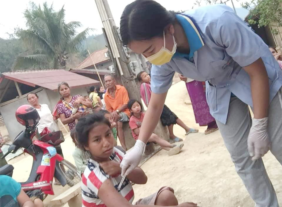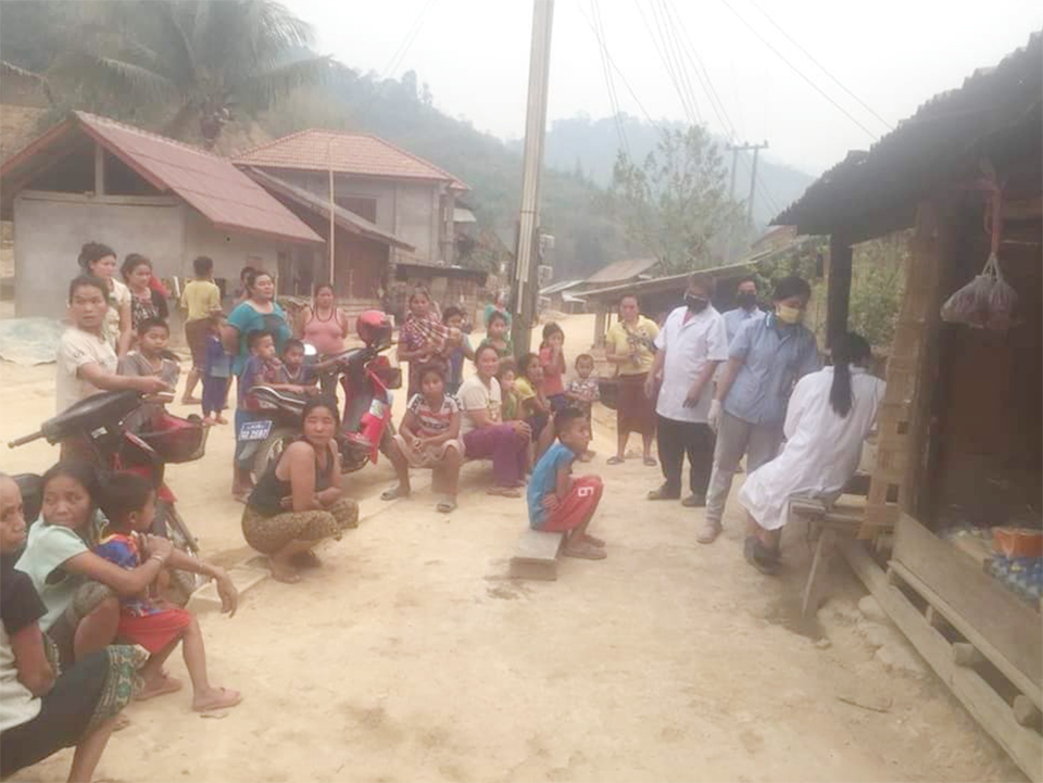 ການເປັນໄຂ້ຫວັດຂອງປະຊາຊົນໃນເຂດບ້ານດັ່ງກ່າວເກີດຂຶ້ນໃນເດືອນມີນາຜ່ານມາໃນນັ້ນອາສາສະໝັກຂັ້ນບ້ານກໍໄດ້ລາຍງານມາໂຮງໝໍນ້ອຍ ແລະ ຫ້ອງການສາທາ ລະນະສຸກເມືອງ ແລະ ສາທາລະນະສຸກເມືອງຫຼາໄດ້ສົ່ງວິຊາການລົງເກັບກຳຂໍ້ມູນຕົວຈິງ ແລະ ມາໃນວັນທີ 2 ເມສາ 2020 ພະນັກງານແພດໝໍຈຶ່ງໄດ້ລົງກວດກາ ແລະປິ່ນປົວເຫັນວ່າໃນເບື້ອງຕົ້ນມີເຈັບທັງໝົດ 84 ຄົນ ຍິງ 55 ຄົນ ເດັກຕໍ່າກວ່າ 5 ປີ ມີ 18 ຄົນ ຍິງ 9 ຄົນ ຊຶ່ງທັງໝົດເປັນພຽງໄຂ້ຫວັດທຳມະດາ ແລະ ໄດ້ສະ ໜອງຢາຈຳນວນໜຶ່ງເພື່ອປະກອບເຂົ້າໃນການລົງເຄື່ອນໄຫວປິ່ນປົວຜ່ານການປິ່ນປົວມາຮອດປະຈຸບັນຄົນເຈັບທີ່ໄດ້ຮັບການປິ່ນປົວຫາຍດີແລ້ວຈຳນວນ 75 ຄົນ ແລະຍັງສືບຕໍ່ກິນຢາຈຳນວນ 9 ຄົນ.