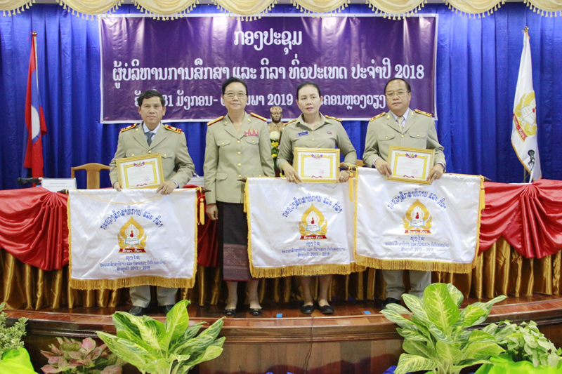 ວັນທີ 1 ກຸມພາ ຜ່ານມາທີ່ຫ້ອງປະຊຸມສະຖາບັນພັດທະນາການບໍລິຫຫານການສຶກສານະຄອນຫຼວງວຽງຈັນ ກະຊວງສຶກສາທິການ ແລະກີລາ (ສສກ) ໄດ້ມອບທຸງໄຊໃຫ້ແກ່ພະແນກສຶກສາທິການ ແລະກີລາແຂວງ/ນະຄອນຫຼວງ ແລະຫ້ອງການສຶກສາທິການ ແລະກີລາເມືອງທີ່ມີຜົນງານດີເດັ່ນຮອບດ້ານຕະຫຼອ ດໄລຍະ 5 ປີ (ສົກປີ 2013-2018) ໂດຍເປັນກຽດມອບຂອງທ່ານ ນາງ ແສງເດືອນ ຫຼ້າຈັນທະບູນ ລັດຖະມົນຕີກະຊວງສຶກສາທິການ ແລະກີລາ, ມີບັນ ດາຫົວໜ້າ-ຮອງຫົວໜ້າກົມ, ຜູ້ບໍລິຫານການສຶກສາທຸກຂັ້ນທົ່ວປະເທດ ແລະຄະນະຮັບຜິດຊອບວຽກງານກ່ຽວຂ້ອງເຂົ້າຮ່ວມ.