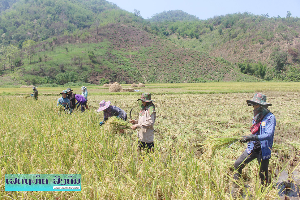 ປະຈຸບັນຊາວກະສິກອນເມືອງປາກທາ ແຂວງບໍ່ແກ້ວ ພວມເກັບກ່ຽວເຂົ້ານາແຊງຕາມລະດູການຢ່າງຂຸ້ນຂ້ຽວເນື້ອທີ່ທຳການຜະລິດ 333 ເຮັກຕາ ຄາດໃຫ້ສຳເລັດເດືອນນີ້.
