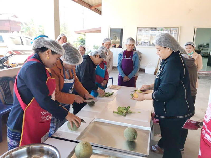 ຫຼັກສູດການຝຶກອົບຮົມໃນຄັ້ງນີ້ແມ່ນເນັ້ນເລື່ອງການນຳເອົາໝາກເມລ່ອນມາປ່ຽນຮູບເປັນຜະລິດຕະ ພັນຕ່າງໆທີ່ມີລົດຊາດແຕກຕ່າງກັນເຊັ່ນ: ນ້ຳໝາກເມລ່ອນ, ໝາກເມລ່ອນອົບແຫ້ງ, ວຸ້ນໝາກເມລ່ອນອົບແຫ້ງ ແລະກວນເມລ່ອນເພື່ອໃຫ້ສະມາຊິກກຸ່ມມີຄວາມຮູ້ຄວາມສາມາດໃນການປ່ຽນຮູບຜະລິດ ຕະພັນຈາກໝາກເມລ່ອນນຳໄປສູ່ການເປັນອາຊີບທາງເລືອກຂະຫຍາຍພະລິດຕະພັນສິນຄ້າປ່ຽນຮູບປະເພດຕ່າງໆອອກສູ່ຕະຫຼາດພາຍໃນ ແລະ ພາຍນອກ ເມືອງຫົງສາຕໍ່ໄປ ແລະເປັນການເພີ່ມມູນຄ່າໃຫ້ຜະລິດຕະພັນທີ່ມາຈາກໝາກເມລ່ອນໃຫ້ເກີດຄວາມຫຼາກຫຼາຍ ແລະມີຄວາມໜ້າສົນໃຈຂອງຜູ້ບໍລິໂພກຫຼາຍຂຶ້ນ.