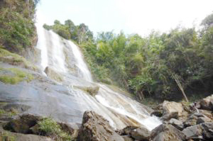 ນໍ້າຕົກຕາດຜາແຈແລເປັນແຫຼ່ງທ່ອງທ່ຽວທາງທໍາມະຊາດເໝາະແກ່ການທ່ຽວຊົມ ແລະພັກຜ່ອນຕາກອາກາດສູບດົມເອົາອາກາດບໍລິສຸດເຢັນສົດຊື່ນໃນຍາມເຊົ້າຈະມີໝອກປົກຫຸ້ມບໍລິເວນຜາແຈແລນີ້ເບິ່ງ ແລ້ວຄ້າຍຄືກັບທະເລໝອກ ຫຼື ສະຫວັນເທິງພື້ນດິນກໍວ່າໄດ້ເປັນມົນສະເໝອັນໜຶ່ງທີ່ດຶງດູດໃຫ້ຜູ້ຄົນທີ່ໄດ້ໄປເມືອງຮົ່ມແລ້ວຕ້ອງໄດ້ໄປສໍາຜັດກັບບັນຍາກາດຜາແຈແລຊຶ່ງຕັ້ງຢູ່ບ້ານນໍ້າຄຽນຫ່າງຈາກເທສະບານເມືອງຮົ່ມປະມານ 6 ກິໂລແມັດຕາມການບອກເລົ່າຂອງຊາວບ້ານໄດ້ໃຫ້ຮູ້ວ່າ:ມີປະຊາຊົນໄດ້ພົບພະອົງໜຶ່ງທີ່ຢູ່ໃກ້ຕາດແຫ່ງນີ້ເປັນສີດໍາ ແລະມີຫຼາຍແຈຕໍ່ມາປະຊາຊົນເຂດນັ້ນຈຶ່ງ ໄດ້ເອີ້ນນໍ້າຕົກຕາດນີ້ວ່າຜາແຈແລ.