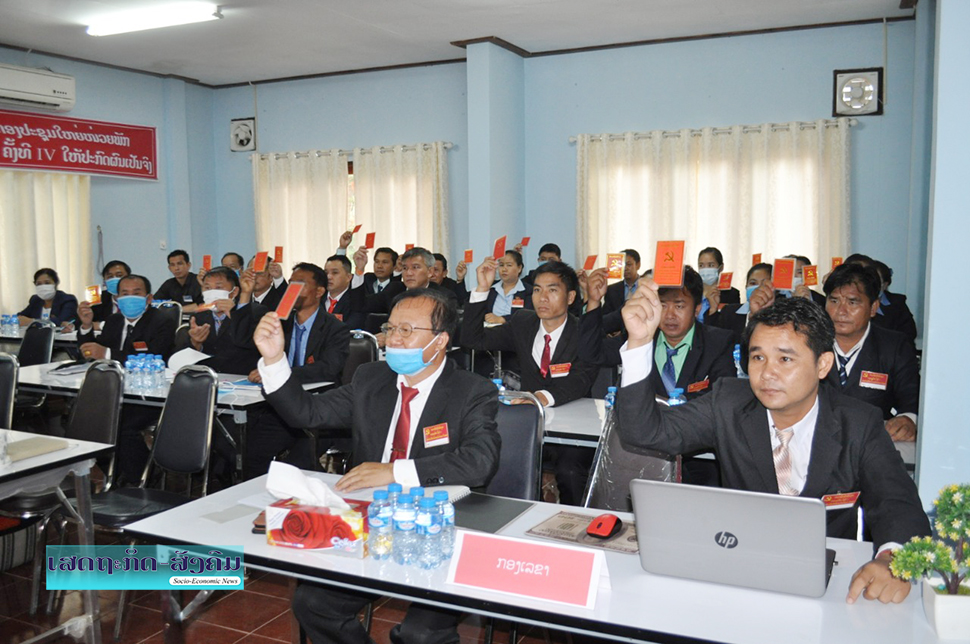 ຈາກນັ້ນກອງປະຊຸມຍັງໄດ້ໃຊ້ສິດປະຊາທິປະໄຕຂອງຕົນປ່ອນບັດເລືອກເອົາຄະນະໜ່ວຍພັກຊຸດໃໝ່ມີຜູ້ໝັກຮັບເລືອກຕັ້ງ 7 ສະຫາຍ, ຍິງ 2 ສະຫາຍ ເລືອກເອົາ 5 ສະຫາຍ. ກອງປະຊຸມຄັ້ງປະຖົມມະລຶກເຫັນດີເປັນເອກະສັນກັນເລືອກເອົາ ສະຫາຍ ອາລິຍະ ຂັນຕິ ເປັນເລຂາໜ່ວຍພັກ, ສະຫາຍ ລັກຊະນະ ແກ້ວແສງທິດ ເປັນ ຮອງເລຂາທັງເລືອກເອົາປະທານກວດກາ ແລະຜູ້ຊ່ວຍວຽກກວດກາຄົບຊຸດ.