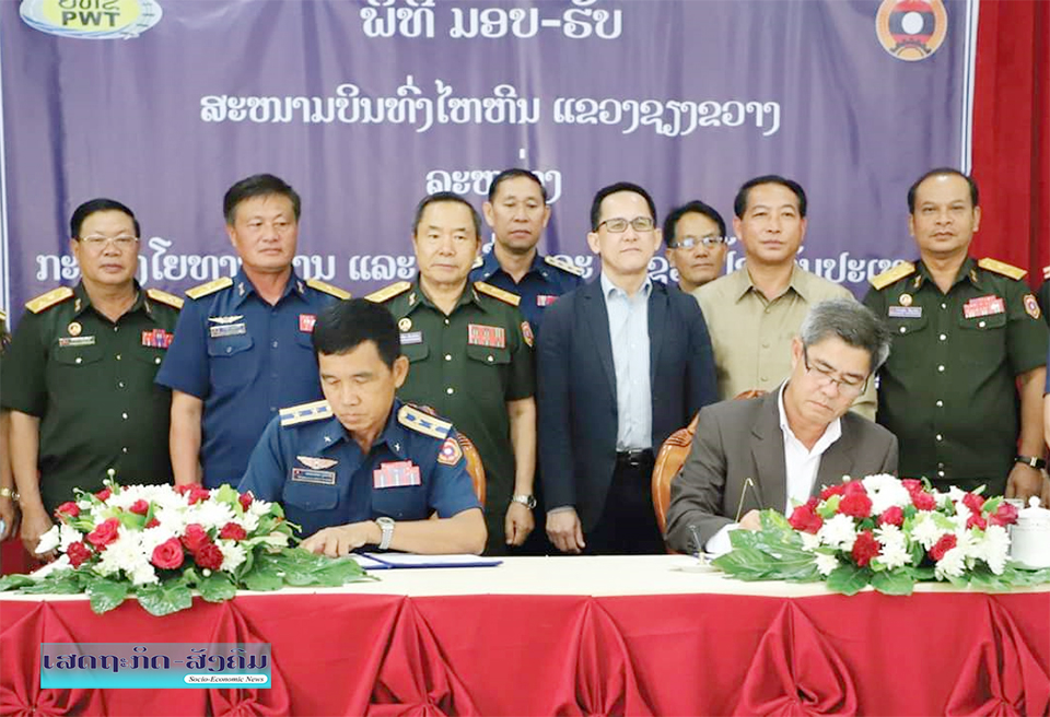 ພິທີມອບ-ໂອນສະໜາມບິນທົ່ງໄຫຫີນຊຽງຂວາງລະຫວ່າງກະຊວງໂຍທາທິການ ແລະຂົນສົ່ງໃຫ້ກະຊວງປ້ອງກັນປະເທດຮັບຜິດຊອບໂດຍກົງໄດ້ຈັດຂຶ້ນໃນວັນທີ 12 ມິຖຸນາ 2020 ທີ່ໂຮງແຮມຊຽງຂວາງວິວ ເມືອງແປກ ແຂວງຊຽງຂວາງ, ໂດຍການກ່າວມອບຂອງ ທ່ານ ບຸນແຕງ ສີມູນ ຮອງຫົວໜ້າກົມການບິນພົນລະເຮືອນ, ກະ ຊວງໂຍທາທິການ ແລະຂົນສົ່ງ, ຕາງໜ້າກ່າວຮັບແມ່ນສະຫາຍ ພັນໂທ ແສງຖະໜອມ ບຸດຕະວົງ ຫົວໜ້າຫ້ອງການກອງບັນຊາການທະຫານອາກາດ, ໂດຍການເຂົ້າຮ່ວມເປັນສັກຂີພິຍານຂອງທ່ານ ພົນຕີ ແອສະໄໝ ເລືອງວັນໄຊ ຮອງລັດຖະມົນຕີກະຊວງປ້ອງກັນປະເທດ, ທ່ານ ປອສັນຕິສຸກ ສິມມາລາວົງ ຮອງລັດຖະມົນຕີກະຊວງໂຍທາທິການ ແລະ ຂົນສົ່ງ, ທ່ານ ບຸນຈັນ ສີວົງພັນ ຮອງເຈົ້າແຂວງຊຽງຂວາງ, ມີຜູ້ຕາງໜ້າກຳລັງປ້ອງກັນຊາດ-ປ້ອງກັນຄວາມສະຫງົບອ້ອມຂ້າງແຂວງ ແລະແຂກຖືກເຊີນເຂົ້າຮ່ວມ, ທ່ານ ບຸນແຕງ ສີມູນ ກ່າວວ່າ: ສະໜາມບິນທົ່ງໄຫຫີນຊຽງຂວາງໃນເມື່ອກ່ອນແມ່ນສ້າງຂຶ້ນມາເພື່ອຮັບໃຊ້ວຽກງານປ້ອງກັນຊາດ-ປ້ອງກັນຄວາມສະຫງົບແຕ່ເພື່ອເຮັດໃຫ້ການນໍາໃຊ້ສະໜາມບິນດັ່ງກ່າວໃຫ້ມີຜົນປະໂຫຍດສູງສຸດເພື່ອຮັບໃຊ້ເຂົ້າໃນການພັດທະນາເສດຖະກິດ-ສັງຄົມ ຂອງປະເທດ ແລະ ຂອງແຂວງຊຽງຂວາງຈຶ່ງໄດ້ມອບ-ໂອນໃຫ້ກະຊວງປ້ອງກັນປະເທດຮັບຜິດຊອບໂດຍກົງ, ຕະຫຼອດໄລຍະ 22 ປີ ທີ່ມີການນໍາໃຊ້ສະໜາມບິນຮ່ວມກັນ, ກົມການບິນພົນລະເຮືອນ