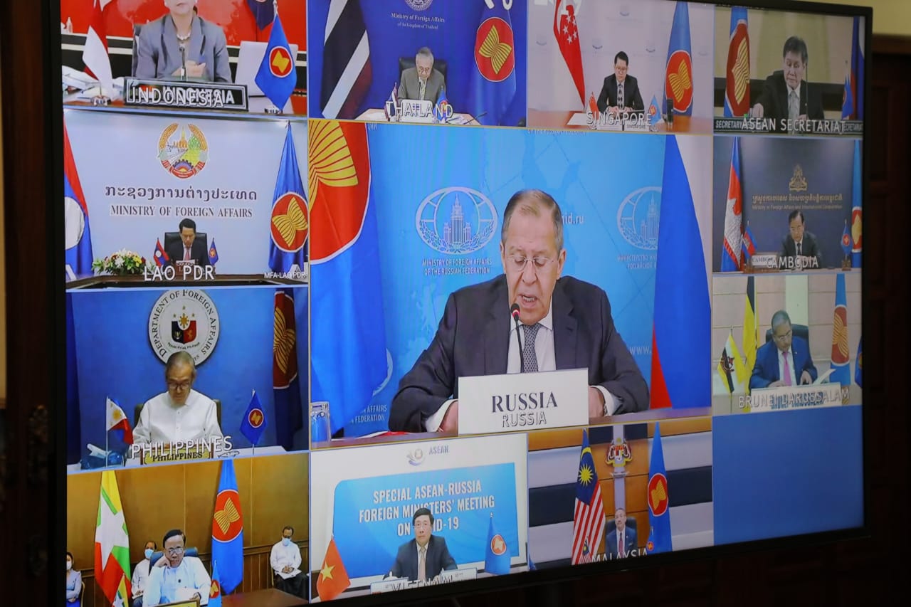 ໃນຕອນບ່າຍຂອງວັນທີ 17 ມີຖຸນາ 2020 ທີ່ກະຊວງການຕ່າງປະເທດ, ທ່ານ ສະເຫຼີມໄຊ ກົມມະສິດ, ລັດຖະມົນຕີກະຊວງການຕ່າງປະເທດ ແຫ່ງ ສປປ ລາວ ໄດ້ນໍາພາຄະນະຜູ້ແທນເຂົ້າຮ່ວມກອງປະຊຸມທາງໄກສະໄໝພິເສດລັດຖະມົນຕີຕ່າງປະເທດອາຊຽນ-ລັດເຊຍ ວ່າດ້ວຍການຕ້ານການແຜ່ລະບາດພະຍາດໂຄວິດ-19 ພາຍໃຕ້ການເປັນປະທານຮ່ວມຂອງທ່ານ ນາງ Retno L.P. Marsudi, ລັດຖະມົນຕີຕ່າງປະເທດອິນໂດເນເຊຍ ແລະທ່ານ Sergey Lavrov, ລັດຖະມົນຕີຕ່າງປະເທດລັດເຊຍ. ເຂົ້າຮ່ວມໃນກອງປະຊຸມຄັ້ງນີ້ຍັງມີບັນດາລັດຖະມົນຕີຕ່າງປະເທດອາຊຽນ, ທ່ານເລຂາທິການໃຫ່ຍອາຊຽນ ແລະບັນດາຜູ້ຕາງໜ້າຈາກກະຊວງຂະແໜງການກ່ຽວຂ້ອງຈໍານວນໜຶ່ງ.