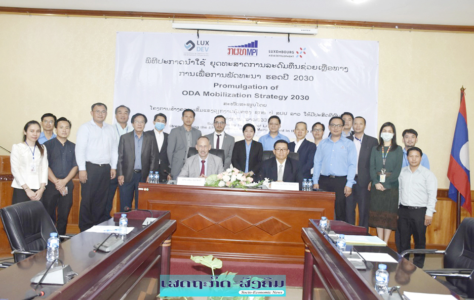 ວັນທີ 23 ມິຖຸນາ 2020 ນະຄອນຫຼວງວຽງຈັນ ກະຊວງແຜນການ ແລະການລົງທຶນໄດ້ຈັດພິທີຮັບຮອງ ແລະປະກາດນຳໃຊ້ຍຸດທະສາດການລະດົມທຶນ ຊ່ວຍເຫຼືອທາງການເພື່ອການພັດທະນາ ສປປ ລາວ ຮອດປີ 2030 ໂດຍການເປັນປະທານຂອງທ່ານ ກິແກ້ວ ຈັນທະບູຣີ ຮອງລັດຖະມົນຕີກະຊວງແຜນການ ແລະການລົງທຶນ, ທ່ານ ແຊມ ຊຣາຍ ເນີ ອຸປະທູດ ລຸກຊໍາບວກ ປະຈໍາ ສປ ສສ ລາວ, ມີທ່ານນາງ ສີສົມບູນ ອຸນາວົງ ຫົວໜ້າກົມຮ່ວມມືສາກົນກະຊວງແຜນການ ແລະການລົງທຶນ, ມີບັນດາຫົວໜ້າ, ຮອງພ້ອມດ້ວຍພາກສ່ວນທີ່ກ່ຽວຂ້ອງເຂົ້າຮ່ວມ.