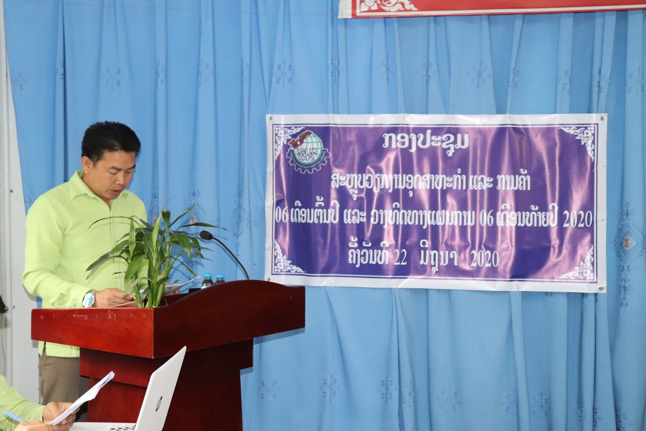 ທ່ານ ບຸນລົມ ຫົງຄຳ ກໍໄດ້ລາຍງານໃຫ້ຊາບວ່າ: ກອງປະຊຸມໄດ້ສະຫຼຸບຕີລາຄາຜົນງານການເຄື່ອນໄຫວວຽກງານ 6 ເດືອນຕົ້ນປີຜ່ານມາທຽບໃສ່ແຜນປີ 2020 ເຫັນວ່າ: ຍອດມູນຄ່າການຜະລິດ ແລະການຈຳໜ່າຍອຸດສາຫະກຳປຸງແຕ່ງ ແລະ ຫັດຖະກຳທົ່ວແຂວງປະຕິບັດໄດ້ 182,34 ຕື້ກີບ ທຽບໃສ່ແຜນການປີແມ່ນປະຕິບັດໄດ້ 32,07%; ການຈໍລະຈອນສິນຄ້າພາຍໃນ (ການຄ້າຂາຍຍົກ-ຂາຍຍ່ອຍ ແລະເກັບຊື້ຜະລິດຕະພັນພາຍໃນ) ສາມາດບັນລຸໄດ້ 648,34 ຕື້ກີບ; ມູນຄ່າການນໍາເຂົ້າ ແລະສົ່ງອອກບັນລຸ 190,91 ຕື້ກີບ ຫຼຸດລົງ 3,2% ເມື່ອທຽບໃສ່ໄລຍະດຽວກັນຂອງປີຜ່ານມາ,ໃນນີ້ການສົ່ງອອກບັນລຸ 94,74 ຕື້ກີບ ເພີ່ມຂຶ້ນ 9,8% ແລະການນໍາເຂົ້າ 96,17 ຕື້ກີບ ຫຼຸດລົງ 14,3%; ການແຈ້ງຂຶ້ນທະບຽນ ແລະຄຸ້ມຄອງວິສາຫະກິດຂຶ້ນໃໝ່ ແລະດັດແກ້ 180 ຫົວໜ່ວຍມູນຄ່າທຶນຈົດທະບຽນ 314,32 ຕື້ກີບ ທຽບໃສ່ແຜນປີແມ່ນປະຕິບັດໄດ້ 51,43% ປັດຈຸບັນໃນທົ່ວແຂວງມີທັງໝົດ 2.068 ຫົວໜ່ວຍມີມູນຄ່າຈົດທະບຽນ 1.138 ຕື້ກີບ ໂດຍປະຕິບັດຕາມຂໍ້ຕົກ ລົງສະບັບເລກທີ 0023/ອຄ.ກທຄວ ເຮັດໃຫ້ການຂຶ້ນທະບຽນວິສາຫະກິດຊ້າສຸດເຫຼືອພຽງ 2 ວັນລັດຖະການ ແລະການພັດທະນາສິນຄ້າທ່າແຮງ ແລະສິນຄ້າໜຶ່ງເມືອງໜຶ່ງຜະລິດຕະພັນ “ODOP” ສາມາດພັດທະນາໄດ້ 3 ຫົວໜ່ວຍຄື: ໂຮງງານປຸງແຕ່ງຊາບູຮານແສງຄຳ ລາວລີ ບ້ານຈ່າພູ ເມືອງຜົ້ງສາລີ, ໂຮງຜະລິດເສັ້ນເຝີ ແລະເຂົ້າປຸ້ນສ່ວນບຸກຄົນ ບ້ານພຽງດອກຄຳ ເມືອງບຸນເໜືອ ແລະກຸ່ມແປຮູບຜະລິດຕະພັນໄຄແຜ່ນບ້ານສິນໄຊ ເມືອງຂວາ.
