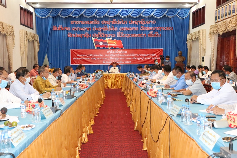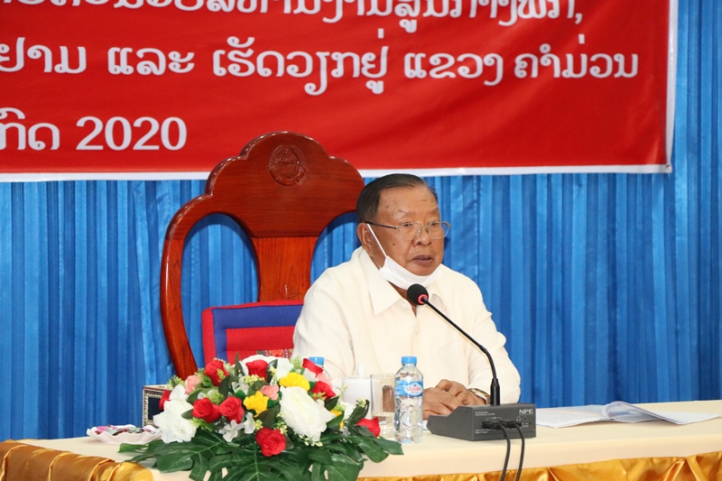 ໃນວັນທີ 08 ກໍລະກົດ 2020 ທ່ານ ບຸນຍັງ ວໍລະຈິດ ເລຂາທິການໃຫຍ່ຄະນະບໍລິຫານງານສູນກາງພັກ, ປະທານປະເທດແຫ່ງ ສປປ ລາວ ໄດ້ລົງເຄື່ອນໄຫວ ແລະເຮັດວຽກຢຸ່ແຂວງຄຳມ່ວນ, ຕິດຕາມການເຄື່ອນໄຫວ ແລະເຮັດວຽກຂອງເພິ່ນໃນຄັ້ງນີ້ມີທ່ານ ທອງສະລິດ ມັງໜໍ່ເມກ ກຳມະການສູນກາງພັກ, ຫົວໜ້າຫ້ອງວ່າການ ສູນກາງພັກ ພ້ອມດ້ວຍຄະນະ. ເປັນກຽດຕ້ອນຮັບການຢ້ຽມຢາມຂອງເພິ່ນແມ່ນ ສະຫາຍ ໂອໄດ ສຸດາພອນ ກຳມະການສູນກາງພັກ, ເລຂາພັກແຂວງ, ເຈົ້າແຂວງຄໍາມ່ວນ ພ້ອມດ້ວຍຄະນະພັກ ແລະ ການນຳຂອງແຂວງຄຳມ່ວນ. ໃນໂອກາດນີ້ ທ່ານ ໂອໄດ ສຸດາພອນ ກຳມະການສູນກາງພັກ, ເລຂາພັກແຂວງ, ເຈົ້າແຂວງຄໍາມ່ວນ ຕາງໜ້າຄະນະພັກ ແລະຄະນະນຳຂອງແຂວງ ໄດ້ຂຶ້ນລາຍງານສະພາບລວມໂດຍຫຍໍ້ ໃນການຈັດຕັ້ງປະຕິບັດຜັນຂະຫຍາຍມະຕິກອງປະຊຸມໃຫຍ່ຄັ້ງທີ X ຂອງພັກກໍຄືມະຕິກອງປະຊຸມໃຫຍ່ຄັ້ງທີ IX ຂອງອົງຄະນະພັກແຂວງຄຳມ່ວນຊຶ່ງມີຜົນສຳເລັດພົ້ນເດັ່ນໃນຫຼາຍດ້ານໂດຍສະເພາະແມ່ນວຽກງານແນວຄິດການເມືອງຂອງສະມາຊິກພັກ-ພະນັກງານ, ທະຫານ, ຕຳຫຼວດນັບມື້ມີຄວາມໜັກແໜ້ນ ແລະ ເຂັ້ມແຂງ; ວຽກງານ ປກຊ-ປກສ ໄດ້ເອົາໃຈໃສ່ສ້າງຄວາມສະຫງົບ ແລະເປັນລະບຽບຮຽບຮ້ອຍ ໃຫ້ໜັກແໜ້ນ,ສຸມໃສ່ຫັດແອບຍຸດທະວິທີ-ສິນລະປະຍຸດ ແລະສ້າງພາລາທິການກັບທີ່ໃຫ້ໜັບມື້ໜັກແໜ້ນ; ວຽກງານພັດທະນາຊົນນະບົດ-ແກ້ໄຂຄວາມທຸກຍາກຂອງປະຊາຊົນ ໄດ້ຮັບການເອົາໃຈໃສ່ແກ້ໄຂເຮັດໃຫ້ຕົວເລກຄອບຄົວທຸກຍາກຫຼຸດລົງຍັງເຫຼືອ 684 ຄອບຄົວ; ການພັດທະນາດ້ານເສດຖະກິດເຖິງວ່າໄດ້ຮັບຜົນກະທົບ ແລະມີຄວາມຫຍຸ້ງຍາກຫຼາຍດ້ານ, ບວກໃສ່ກັບໄພທໍາມະຊາດ ແລະໂລກລະບາດໂຄວິດ 19 ທີ່ບໍ່ເອື້ອຍອໍານວຍໃນໄລຍະຜ່ານມາ,ແຕ່ກໍ່ເຫັນວ່າໃນທົ່ວແຂວງໄດ້ພ້ອມກັນພະ ຍາຍາມບຸກບືນ, ສູ້ຊົນດ້ວຍຄວາມຮັບຜິດຊອບສູງເພື່ອບັນລຸບັນດາຄາດໝາຍໃຫຍ່ທີ່ໄດ້ກໍານົດອອກໃຫ້ປະກົດຜົນເປັນຈິງ; ດ້ານວຽກງານວັດທະນາທໍາ-ສັງຄົມກໍ່ໄດ້ຮັບການເອົາໃຈໃສ່ ແລະ ມີດ້ານຂະຫຍາຍຕົວທີ່ຕໍ່ເນື່ອງ..ທັງໝົດນັ້ນລ້ວນແຕ່ເປັນການປະກອບສ່ວນສໍາຄັນເຮັດໃຫ້ແຂວງຄຳມ່ວນມີສະຖຽນລະພາບທາງດ້ານການເມືອງ, ສັງຄົມມີຄວາມສະຫງົບ ແລະເປັນລະບຽບຮຽບຮ້ອຍໂດຍພື້ນຖານ, ຊີວິດການເປັນຢູ່ຂອງປະຊາຊົນບັນດາເຜົ່າໄດ້ຮັບການຍົກລະດັບດີຂຶ້ນຢ່າງບໍ່ຢຸດຢັ້ງ.