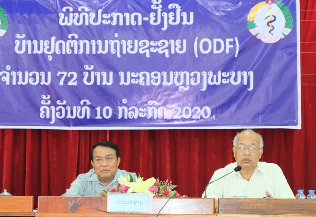 ຫ້ອງການສາທາລະນະສຸກ ນະຄອນຫຼວງພະບາງ ໄດ້ຈັດພິທີປະກາດຢັ້ງຢືນບ້ານຢຸດຕິການຖ່າຍຊະຊາຍ (ODF) ຈໍານວນ 72 ບ້ານ ຂຶ້ນໃນວັນທີ 10 ກໍລະກົດ 2020 ຢູ່ຫ້ອງປະຊຸມໃຫຍ່ນະຄອນຫຼວງພະບາງໂດຍເປັນປະທານຮ່ວມຂອງທ່ານ ດຣ ບຸນທຽມ ສີພາດາ ຮອງຫົວໜ້າພະແນກສາທາລະນະສຸກແຂວງຫຼວງພະບາງ, ມີທ່ານ ບຸນລຽງ ແກ້ວມະນີ ຮອງເລຂາພັກນະຄອນຫຼວງພະບາງ, ມີຫົວໜ້າຫ້ອງການສາທານະຄອນ, ຫົວໜ້າກຸ່ມບ້ານ, ນາຍບ້ານແຕ່ລະບ້ານພ້ອມດ້ວຍແຂກຖືກເຊີນເຂົ້າຮ່ວມ.