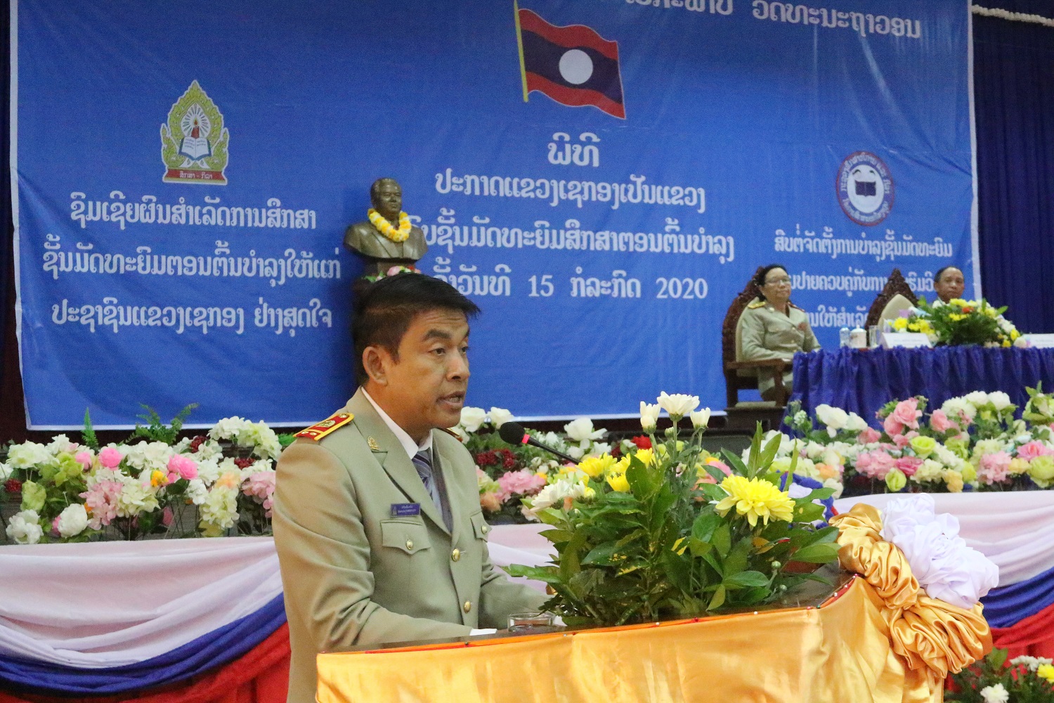 ພິທີປະກາດຈົບຊັ້ນມັດທະຍົມຕອນຕົ້ນບໍາລຸງໃຫ້ປະຊາຊົນແຂວງເຊກອງໄດ້ມີຂຶ້ນໃນວັນທີ 15 ກໍລະກົດ 2020 ທີ່ສະໂມສອນແຂວງໂດຍມີທ່ານນາງ ແສງເດືອນ ຫຼ້າຈັນທະບູນ ລັດຖະມົນຕີກະຊວງສຶກສາທິການ ແລະກີລາທ່ານ ຄໍາເຜີຍ ບຸດດາວຽງ ເຈົ້າແຂວງໆເຊກອງ, ພ້ອມນີ້ກໍມີທ່ານຮອງເຈົ້າແຂວງສາລະວັນ,ຈໍາປາສັກ, ອັດຕະປື, ຫົວໜ້າ-ຮອງພະແນກ, ຫ້ອງການອ້ອມຂ້າງແຂວງ, ແຂກຈາກສູນກາງ ແລະຄູ-ອາຈານເຂົ້າຮ່ວມ.