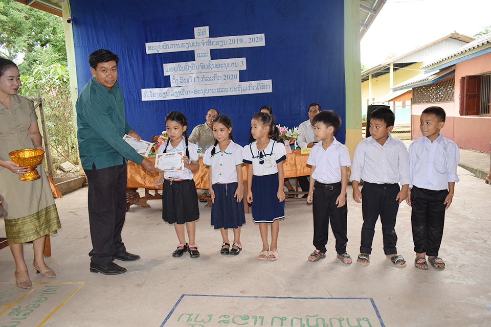ວັນທີ 17 ກໍລະກົດ ຜ່ານມາໂຮງຮຽນລ້ຽງເດັກອະນຸບານ ແລະປະຖົມກິດຕິສັກໄດ້ຈັດພິທີສະຫຼຸບຜົນການຮຽນປະຈໍາສົກ 2019-2020 ແລະມອບໃບຢັ້ງຢືນຈົບຊັ້ນອະນຸບານ 3 ຂຶ້ນ, ໂດຍການໃຫ້ກຽດເຂົ້າຮວ່ມຂອງ ທ່ານ ແກ້ວ ພວງແກ້ວ ຮອງຫົວໜ້າຫ້ອງການສຶກສາທິການ ແລະ ກີລາເມືອງ, ມີ ທ່ານ ບຸນມີ ປ້ອງຄໍາ ຜູ້ອໍານວຍການໂຮງຮຽນລ້ຽງເດັກອະນຸບານ ແລະປະຖົມກິດຕິສັກ ເມືອງຫົງສາ ມີເຈົ້າຂອງໂຮງຮຽນ, ແຂກຖືກເຊີນ, ຄູ-ອາຈານ, ຜູ້ປົກຄອງນ້ອງນັກຮຽນ ແລະນ້ອງນ້ອຍນັກຮຽນເຂົ້າຮວ່ມຢ່າງພ້ອມພຽງ.