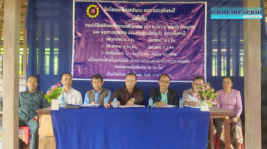 ໃນພິທີທ່ານ ເດດສຸວັນ ມະໄລທອງ ຫົວໜ້າລັດວິສາຫະກິດໄຟຟ້າລາວສາຂາ ແຂວງອັດຕະປື ໄດ້ຜ່ານບົດລາຍງານໂຄງການຕິດຕັ້ງລະບົບໄຟຟ້າຢູ່ບ້ານພູຍາງ, ເຊິ່ງໂຄງການດັ່ງກ່າວໄດ້ເລີ່ມຈັດຕັ້ງປະຕິບັດມາແຕ່ວັນທີ 10 ມິຖຸນາ ຫາ ວັນທີ 14 ກໍລະກົດ 2020ແມ່ນສຳເລັດ 100%,ປະກອບມີການກໍ່ສ້າງຕາຂ່າຍໄຟຟ້າ 12,7 ກິໂລໂວນ ມີຄວາມຍາວ 19,6 ແມັດ ກໍ່ສ້າງຕາຂ່າຍໄຟຟ້າ 0,23 ກິໂລໂວນ ມີຄວາມຍາວ 2,3 ກິໂລແມັດ ແລະ ຕິດຕັ້ງໝໍ້ແປງ 12,7 ກິໂລໂວນ, ມີຈຳນວນ 2 ໜ່ວຍ, ລວມມູນຄ່າໃນການກໍ່ສ້າງ 2 ຕື້ 147 ລ້ານກວ່າກີບ. ມາຮອດປະຈຸບັນບັນາໜ້າວຽກທັງໝົດແມ່ນໄດ້ຈັດຕັ້ງປະຕິບັດຖືກຕ້ອງຕາມແຜນຜັງ-ສອດຄ່ອງກັບມາດຖານເຕັກນິກໄຟຟ້າລາວສາຂາແຂວງອັດຕະປຶ ແລະຈັດຕັ້ງປະຕິບັດສໍາເລັດ 100 %. ຂອງບັນດາໜ້າວຽກທັງໝົດປະຈຸບັນບ້ານພູຍາງ ມີ 37 ຄອບຄົວ, ຊົມໃຊ້ໄຟຟ້າແລ້ວ 30 ຄອບຄົວ, ເຮັດໃຫ້ປະຈຸບັນໃນທົ່ວເມືອງພູວົງທຸກບ້ານ ແມ່ນໄດ້ຊົມໃຊ້ໄຟຟ້າຖາວອນແລ້ວ 100%.