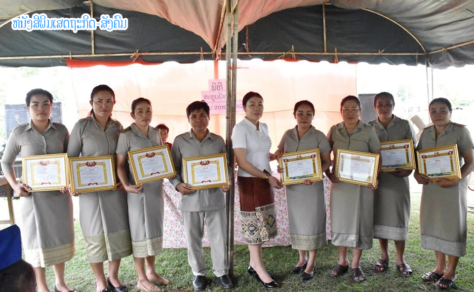 ໃນພີທີທ່ານ ນາງ ຈັນດາ ເພັງ ພຸດທະວົງ ຜູ້ອຳນວຍການໂຮງຮຽນໄດ້ຂຶ້ນຜ່ານບົດສະຫຼຸບໃນການປະຕິບັດວຽກງານການຮຽນການສອນໃນ 1 ສົກຮຽນຜ່ານມາວ່າໂຮງຮຽນແຫ່ງນີ້ມີ 2 ຊັ້ນຮຽນຄືຊັ້ນອະນຸບານ ແລະຊັ້ນປະຖົມ, ຊັ້ນຮຽນອະນຸບານ 1 ຫາອະນຸບານ 3 ມີ 3 ຫ້ອງຮຽນມີນັກຮຽນທັງໝົດ 55 ຄົນ, ຍິງ 32 ຄົນ,ມີຄູສອນ 3 ຄົນ, ຍິງ 3, ຊັ້ນປະຖົມມີ 5 ຫ້ອງຮຽນແຕ່ ປ1-5 ມີ 5 ຫ້ອງຮຽນ, ມີນັກຮຽນທັງໝົດ 112 ຄົນ, ຍິງ 51 ຄົນ, ມີຄູທັງໝົດ 6 ຄົນ, ຍິງ 5 ຄົນ, ຄູ ສອນທັງໝົດມີ 9 ຄົນ, ຍິງ 8 ຄົນ, ໃນໄລະ 1 ສົກຮຽນເຫັນວ່າຄູ ແລະນັກຮຽນມີຄວາມເປັນລະບຽບຮຽບຮ້ອຍດີມີແນວຄິດອຸ່ນອຽນທຸ່ນທ່ຽງຫ້າວຫັນຕໍ່ໜ້າທີ່ວຽກ ງານພ້ອມກັນຈັດຕັ້ງປະຕິບັດແຜນພັດທະນາການສຶກສາທີ່ໄດ້ວ່າງອອກລະບຸຕາມຄາດໝາຍຊຶ່ງສະແດງອອກຄືຄູ-ອາຈານທຸກຄົນແມ່ນໄດ້ສຸມຈິດສຸມໃຈໃສ່ໃນການສິດສອນ, ຂຶ້ນຫ້ອງສອນ, ແຕ່ງບົດສອນຕາມໂຄງການຫຼັກສູດ ແລະຖືກຕາມປະມວນການສອນ,ຄູ-ອາຈານຍັງໄດ້ ເອົາໃຈໃສ່ບຳລຸງນັກຮຽນຊັ້ນ ປ5 ເພື່ອສ້າງເປົ້າໝາຍນັກຮຽນເກັ່ງເພື່ອເລືອກເອົານັກຮຽນເກັ່ງໄປເສັງຂັ້ນກຸ່ມມີ 8 ນ້ອງ, ຕິດອັນດັບຂັ້ນເມືອງມີ 1 ນ້ອງວິຊາພາສາລາວ ແລະໄດ້ລົງທະບຽນໄປເສັງອີກ 1 ນ້ອງວິຊາພາສາລາວ ໃນ 1 ສົກຮຽນຜ່ານມາມີນັກຮຽນເກັ່ງປະເພດ 1 ແຕ່ ປ1-ປ5 ມີ 5 ນ້ອງ, ປະເພດ 2 ແຕ່ ປ1-ປ5 ມີ 6 ນ້ອງ, ຜ່ານການປະເມີນການສອນເສັງເລື່ອນຊັ້ນ ແລະຈົບຊັ້ນ ປ1-5 ມີທັງໝົດ 112 ນ້ອງ, ຍິງ 51 ຄົນ, ສອບເສັງໄດ້ທັງໝົດ 112 ນ້ອງ, ສະເລ່ຍໄດ້ 100%.