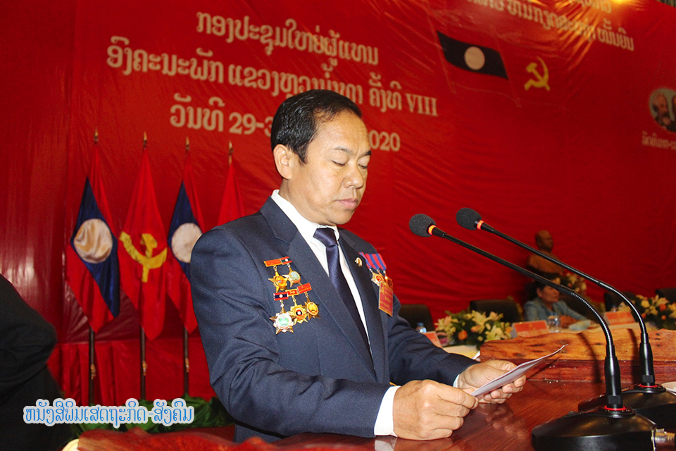 ກອງປະຊຸມໃຫຍ່ຄັ້ງທີ VIII ຂອງອົງຄະນະພັກແຂວງຫຼວງນໍ້າທາໄດ້ສຳເລັດລົງດ້ວຍໝາກຜົນທີ່ໜັກແໜ້ນໃນວັນທີ 29- 30 ກໍລະກົດ 2020 ທີ່ຫໍວັດທະນະທໍາແຂວງ ໂດຍການເປັນປະທານຂອງສະຫາຍ ເພັດຖາວອນ ພິລະວັນ ກຳມະການສູນກາງພັກເລຂາຄະນະບໍລິຫານງານພັກແຂວງເຈົ້າແຂວງໆຫຼວງນໍ້າທາ ແລະໃຫ້ກຽດເຂົ້າຮ່ວມໂດຍສະຫາຍ ພົນເອກ ຈັນສະໝອນ ຈັນຍາລາດ ກຳມະການກົມການເມືອງສູນກາງພັກລັດຖະມົນຕີກະຊວງປ້ອງກັນປະເທດ, ມີບັນດາສະຫາຍຜູ້ແທນຈາກຫ້ອງວ່າການສູນກາງພັກ, ຄະນະຈັດຕັ້ງສູນກາງພັກ, ຄະນະກວດກາສູນກາງພັກ, ບັນດາສະຫາຍອະດີດການນຳແຂວງ, ນັກປະຕິວັດຜູ້ຊົງຄຸນວຸດທິ, ບັນດາສະຫາຍຜູ້ແທນສົມບູນຕາງໜ້າໃຫ້ສະມາຊິກພັກໃນທົ່ວແຂວງເຂົ້າຮ່ວມ.