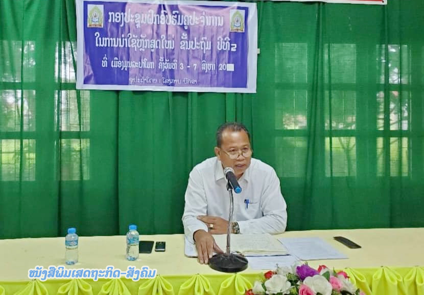 ໃນວັນທີ 3 ສີງຫາ 2020 ຫ້ອງການສືກສາທິການ ແລະກີລາ ເມືອງມຸນລະປາໂມກ ເປີດກອງປະຊຸມຝຶກອົບຮົມຄູປະຈໍາການໃນການນໍາໃຊ້ຫຼັກສູດໃໝ່ຂັ້ນປະຖົມປີທີ 2 ໃຫ້ກຽດເປັນປະທານຂອງ ທ່ານ ສີສະຫວັດ ພົມມະລິວັນ ຄະນະປະຈໍາພັກເມືອ, ຜູ້ຊີ້ນໍາວຽກງານຂົງເຂດວັດທະນະທໍາສັງຄົມທ່ານ ນາງ ຄໍາດີ ສອນວິເສດຄະ ນະຫ້ອງການສຶກສາທິການ ແລະກີລາເມືອງຜູ້ຊີ້ນໍາວຽກວິຊາການ, ທ່ານ ນາງ ຂຽວພອນ ສີຫາວົງ ຄູຝຶກມາຈາກວິທະຍາໄລຄູປາກເຊພ້ອມຄະນະ, ມີຄູສອນ ປ2 ທົ່ວ ເມືອງ, ໜ່ວຍງານທີ່ກ່ຽວຂ້ອງຈາກຫ້ອງການສືກສາທິການ ແລະກີລາເມືອງເຂົ້າຮ່ວມກອງປະຊຸມຈະໄດ້ດໍາເນີນໄປເປັນເວລາ 5 ວັນນັບແຕ່ວັນທີ 3-7 ສີງຫາ 2020 ຈຶ່ງຈະສໍາເລັດ.