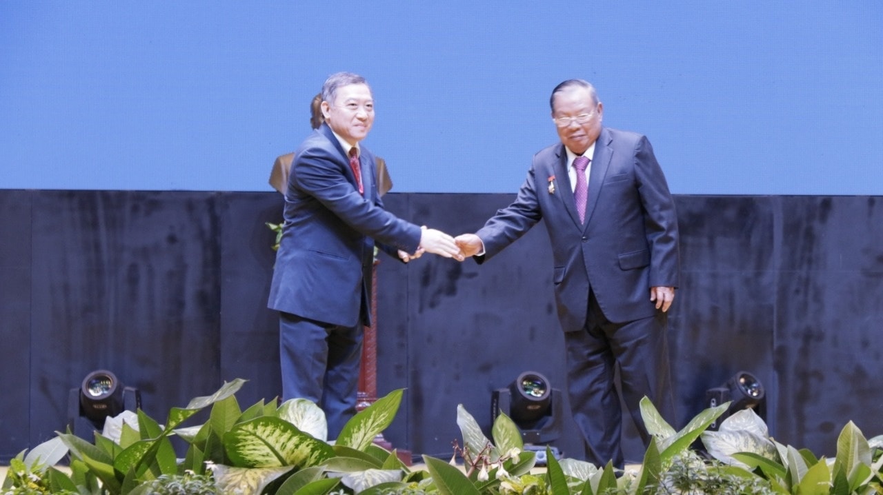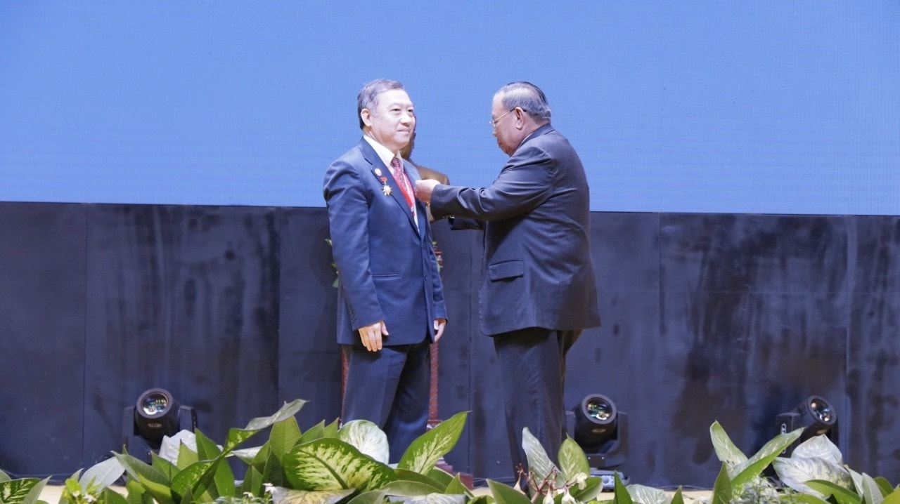 ໃນພິທີໂຮມຊຸມນຸມຍັງໄດ້ມີການປະດັບຫຼຽນຂອງປະທານປະເທດໂດຍທ່ານ ບຸນຍັງ ວໍລະຈິດ ໄດ້ໃຫ້ກຽດປະດັບຫຼຽນຄໍາແຫ່ງຊາດໃຫ້ແກ່ອົງການແນວລາວສ້າງຊາດ, ພ້ອມທັງປະດັບຫຼຽນໄຊອິດສະຫຼະຊັ້ນIໃຫ້ແກ່ປະທານສູນກາງແນວລາວສ້າງຊາດ ແລະປະດັບຫຼຽນໄຊພັດທະນາຊັ້ນ I ໃຫ້ແກ່ນັກທຸລະກິດດີເດັ່ນຈໍານວນ 1 ທ່ານ. ໃນໂອກາດດັ່ງກ່າວທ່ານ ບຸນຍັງ ວໍລະຈິດ ໄດ້ກ່າວບົດສູນທອນພົດຕໍ່ພິທີໂຮມຊຸມນຸມວ່າ: ຕະຫຼອດໄລຍະ 70 ປີ ຜ່ານມາອົງການແນວລາວສ້າງຊາດຂັ້ນຕ່າງໆໃນທົ່ວປະເທດໄດ້ຮັບການປັບປຸງບູລະນະຢ່າງເຕີບໃຫຍ່ເຂັ້ມແຂງນັບທັງດ້ານປະລິມານ ແລະຄຸນນະພາບໄດ້ປະກອບສ່ວນຢ່າງສຳຄັນໃຫຍ່ຫຼວງເຂົ້າໃນພາລະກິດແຫ່ງການຕໍ່ສູ້ກູ້ຊາດໃນເມື່ອກ່ອນກໍຄືໃນພາລະກິດແຫ່ງການປົກປັກຮັກສາ ແລະພັດທະນາສ້າງສາປະເທດຊາດໃນໄລຍະໃໝ່ເນື່ອງໃນໂອກາດວັນບຸນໃຫຍ່ປະຫວັດສາດອັນມີຄວາມໝາຍສຳຄັນຂອງຊາດນີ້ໃນນາມຄະນະບໍລິຫານງານສູນກາງພັກ ແລະລັດຖະບານຂໍສະແດງຄວາມຍ້ອງຍໍສັນລະເສີນຕໍ່ອົງການແນວລາວສ້າງຊາດຂັ້ນຕ່າງໆ,ພີ່ນ້ອງຮ່ວມຊາດທຸກຊົນເຜົ່າ, ທຸກຊັ້ນ ຄົນ, ເພດ-ໄວໃນທົ່ວປະເທດທີ່ໄດ້ເຊີດຊູນໍ້າໃຈຮັກຊາດຮັກລະບອບໃໝ່ສາມັກຄີເປັນອັນໜຶ່ງອັນດຽວກັນຢູ່ອ້ອມຂ້າງສູນກາງພັກ ແລະລັດຜ່ານຜ່າຄວາມຫຍຸ້ງຍາກລຳບາກ, ອຸທິດສະຕິປັນຍາ,ກຳລັງວັງຊາ,ເສຍສະລະທຸກສິ່ງທຸກຢ່າງເພື່ອຜົນປະໂຫຍດລວມຂອງປະເທດຊາດອັນແສນຮັກຂອງພວກເຮົາຕະຫຼອດໄລຍະທີ່ຜ່ານມາ.