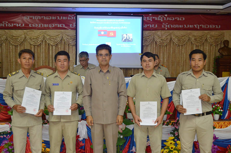 ທ່ານ ອຳພອນ ສີປະເສີດ ຄະນະໜ່ວຍພັກຫ້ອງການພະແນກສຶກສາທິການ ແລະກີລາແຂວງໄດ້ຂຶ້ນ ຜ່ານມະຕິຕົກລົງຂອງຄະນະປະຈຳພັກແຂວງພະບາງ ວ່າດ້ວຍການອະນຸມັດຮັບຮອງເອົາມະຫາຊົນຜູ້ກ້າວໜ້າເຂົ້າເປັນສະມາຊິກພັກສຳຮອງຂອງປະຊາຊົນປະຕິວັດລາວຈຳນວນ 9 ສະຫາຍ, ຍິງ 2 ສະຫາຍ, ມະຫາຊົນຜູ້ກ້າວໜ້າຈຳນວນ 9 ສະຫາຍນີ້ເຫັນວ່າມີຄຸນທາດການເມືອງໜັກແໜ້ນ,ປະຕິບັດລະບຽບວິໄນຂອງພັກປະຊາຊົນປະຕິວັດລາວໄດ້ດີ ແລະມີຄຸນສົມບັດຄົບຖ້ວນແລ້ວຈຶ່ງໄດ້ສະເໜີໃຫ້ທ່ານ ມີນາ ຈັນມະນີ ຮອງເລຂາຄະນະໜ່ວຍພັກຫ້ອງການພະແນກສຶກສາທິການ ແລະກີລາແຂວງຂຶ້ນມອບໃບຢັ້ງຢືນຮັບຮອງເອົາຢ່າງສົມກຽດ.