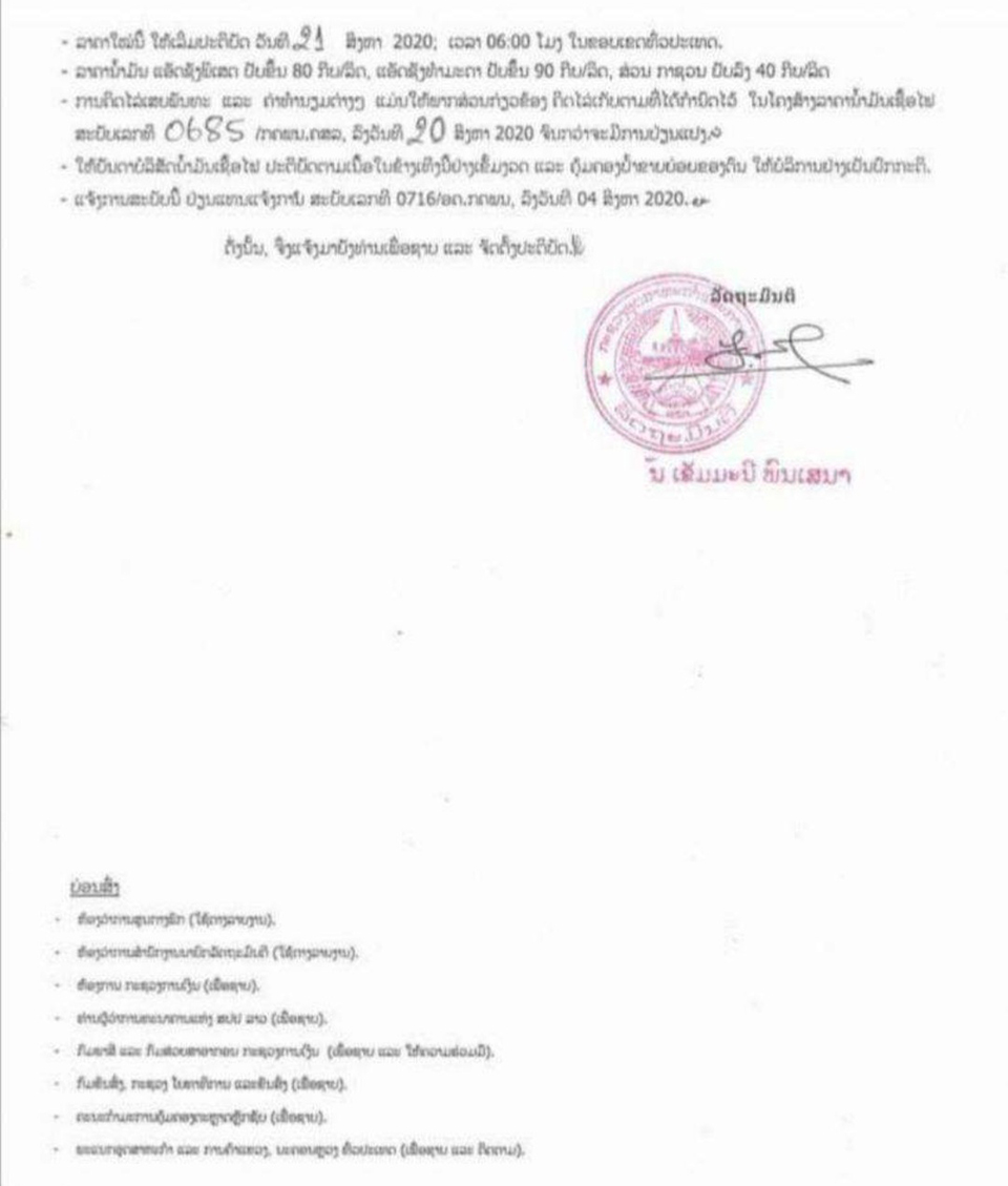 - ໂດຍເລີ່ມປະຕິບັດແຕ່ເວລາ 6:00 ໂມງຂອງວັນທີ 21 ສິງຫາ 2020;