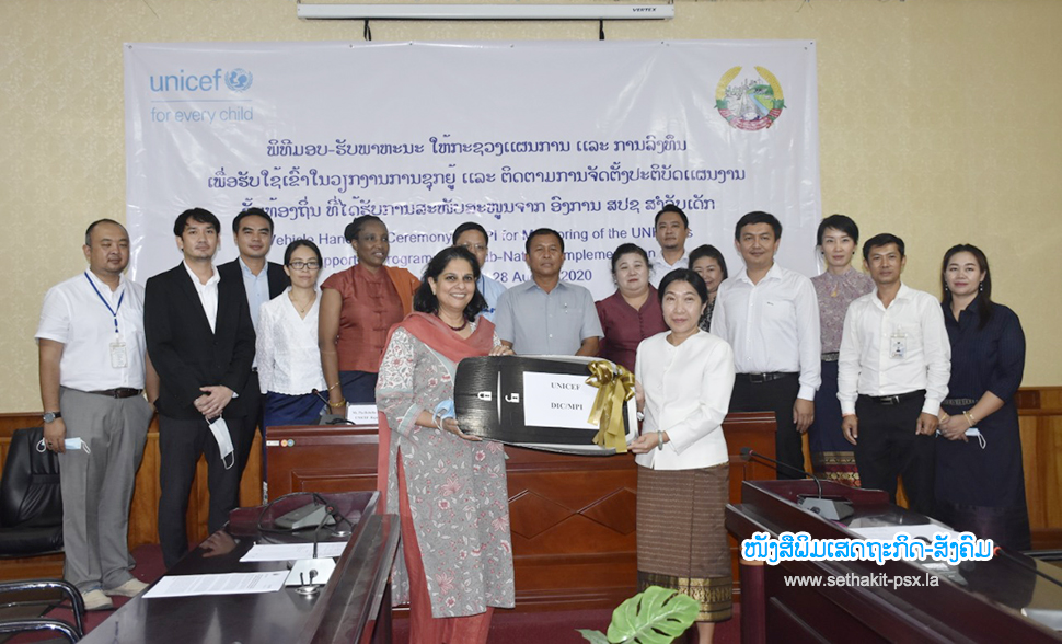 ອົງການຢູນີເຊັບປະຈຳລາວ ໄດ້ມອບ-ພາຫະນະຈຳນວນ 1 ຄັນໃຫ້ແກ່ກະຊວງແຜນການ ແລະການລົງທຶນ (ຜທ) ເພື່ອຮັບໃຊ້ໃນການລົງຕິດຕາມ ແລະຊຸກຍູ້ການຈັດຕັ້ງປະຕິບັດແຜນງານທີ່ໄດ້ຮັບການສະໜັບສະໜູນຈາກອົງການຢູນີເຊັບຢູ່ຂັ້ນທ້ອງຖີ່ນໂດຍສະເພາະຢູ່ບັນດາແຂວງເປົ້າໝາຍຂອງແຜນງານຮ່ວມມືລະຫວ່າງລັດ ຖະບານລາວ ແລະອົງການຢູນີເຊັບພິທີມອບ-ຮັບລົດດັ່ງກ່າວຈັດຂຶ້ນໃນວັນທີ 28 ສິງຫາ 2020 ທີ່ນະຄອນຫຼວງວຽງຈັນເຂົ້າຮ່ວມມີທ່ານ ນາງ ສີສົມບູນ ອຸນາວົງຫົວໜ້າກົມຮ່ວມມືສາກົນກະຊວງແຜນການ ແລະ ການລົງທຶນ ແລະ ທ່ານ ນາງ ປອ ເພຍບຣິໂຕ, ຜູ້ຕາງໜ້າອົງການຢູນິເຊັບປະຈຳ ສປປ ລາວ, ມີພະນັກງານທີ່ກ່ຽວຂ້ອງທັງສອງຝ່າຍເຂົ້າຮ່ວມ.