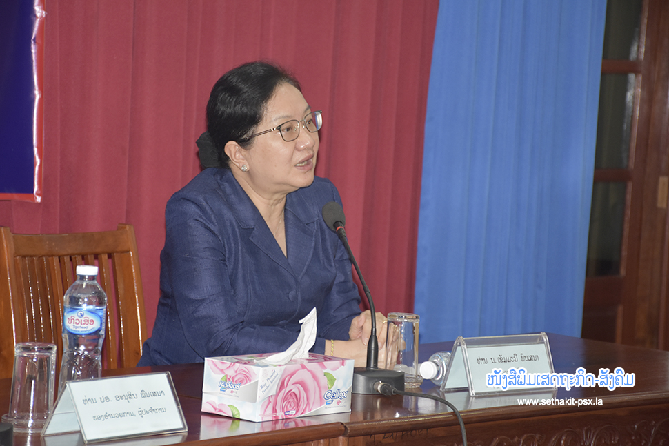 ໂອກາດນີ້ ທ່ານ ນາງ ເຂັມມະນີ ພົນເສນາ ກໍ່ໄດ້ໃຫ້ກຽດໂອ້ລົມກ່ອນອື່ນທ່ານໄດ້ສະແດງຄວາມຍ້ອງຍໍຊົມເຊີຍຕໍ່ຄະນະອຳນວຍການ ລນລ ທີ່ຍາດໄດ້ຜົນສຳເລັດຫຼາຍດ້ານໃນໄລຍະຜ່ານມາພ້ອມທັງໄດ້ເນັ້ນບາງບັນຫາໃຫ້ຄະນະອຳນວຍການ ລນລ ຊຸດໃໝ່ທີ່ໄດ້ຮັບການແຕ່ງຕັ້ງສືບຕໍ່ປະຕິບັດໜ້າທີ່ຂອງຕົນໃຫ້ມີຜົນສຳເລັດ ແລະ ມີຜົນງານດີຂຶ້ນກວ່າເກົ່າ.