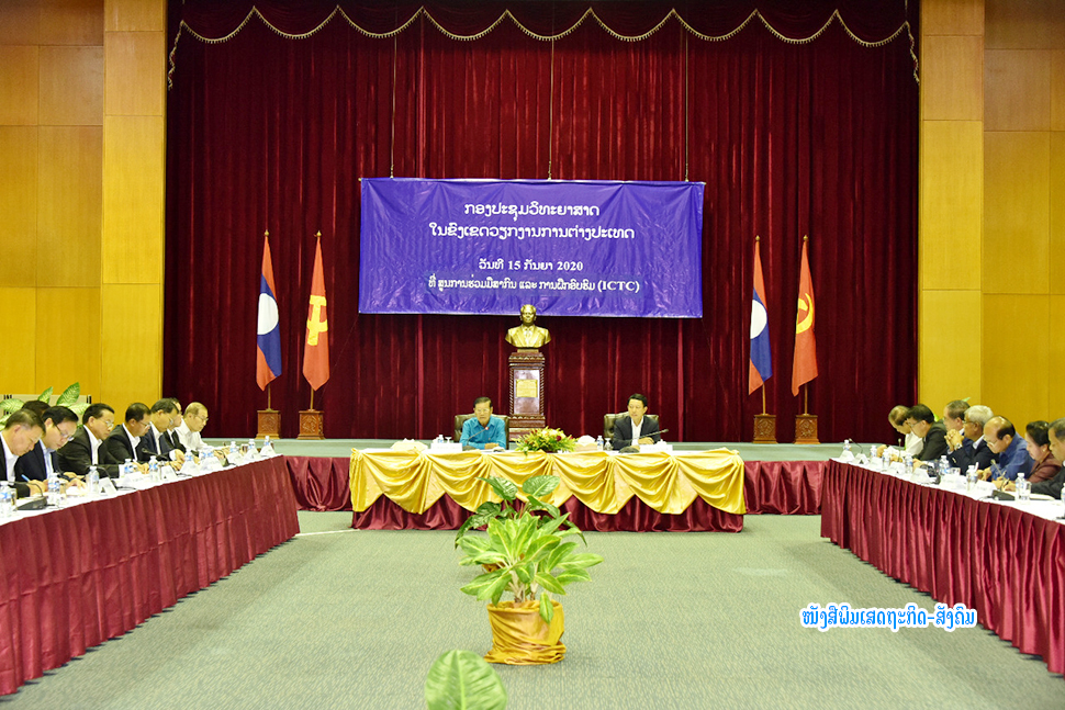 ວັນທີ 15 ກັນຍາ 2020, ກະຊວງການຕ່າງປະເທດໄດ້ຈັດກອງປະຊຸມວິທະຍາສາດໃນຂົງເຂດວຽກງານການຕ່າງປະເທດ, ທີ່ສູນຝຶກອົບຮົມ ແລະຮ່ວມມືສາກົນ (ICTC), ໃຫ້ກຽດເປັນ ປະທານກອງປະຊຸມໂດຍທ່ານ ສົມສະຫວາດ ເລັ່ງສະຫວັດອະດີດ ຮອງນາຍົກລັດຖະມົນຕີ, ມີທ່ານ ສະເຫຼີມໄຊ ກົມມະສິດ ລັດຖະມົນຕີກະຊວງການຕ່າງປະເທດ, ພ້ອມດ້ວຍຄະນະນຳກະຊວງການຕ່າງປະເທດບັນດາທ່ານ ທູດອາວຸໂສ ບຳນານ, ບັນດາທ່ານຄະນະກົມ ແລະວິຊາການຂອງກະຊວງການຕ່າງປະເທດ ແລະກະຊວງອ້ອມຂ້າງສູນກາງເຂົ້າຮ່ວມ.