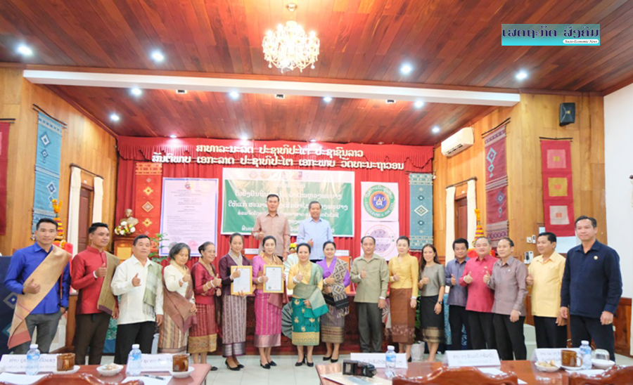 ທ່ານ ນາງ ຂັນລາສີ ແກ້ວບຸນພັນ ຫົວໜ້າກົມຊັບສິນທາງປັນຍາກະຊວງວິທະຍາສາດ ແລະເຕັກໂນໂລຊີໄດ້ລາຍງານຜົນການຈັດຕັ້ງປະຕິບັດ ແລະການກະກຽມຈົດ ທະບຽນຖິ່ນກໍາເນີດຜ້າໄໝຫຼວງພະບາງໃນຕະຫຼອດໄລຍະຜ່ານມາພ້ອມທັງມອບໃບອະນຸຍາດນຳໃຊ້ກາໝາຍຖິ່ນກຳເນີດແຫ່ງຊາດໃຫ້ແກ່ສະມາຄົມສົ່ງເສີມຜ້າໄໝຫຼວງພະບາງຄຸ້ມຄອງຕາມພາລະບົດບາດທີ່ໄດ້ກໍານົດໄວ້ໃນລະບຽບຂອງສະມາຄົມ.