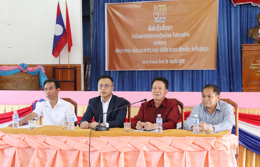 ພີທີເຊັນສັນຍາການເບີກຈ່າຍເງິນເດືອນ ແລະເງິນອຸດໜູນຜ່ານລະບົບບັນຊີຢູມັນນີ (U-money) ຂອງບໍລິສັດ ສະຕາວິນແທັກ ຊຶ່ງເປັນເຄືອຄ່າຍຂອງບໍລິສັດສະຕາໂທລະຄົມ ຫຼືຢູນິເທວໃຫ້ແກ່ນາຍບ້ານໃນທົ່ວເມືອງມະຫາໄຊ ແຂວງຄຳມ່ວນໄດ້ຈັດຂຶ້ນໃນວັນທີ 30 ກັນຍາ 2020 ທີ່ເມືອງມະຫາໄຊລະຫວ່າງອົງການປົກຄອງເມືອງ ຊຶ່ງລົງນາມໂດຍ ທ່ານ ບົວພັນ ແສງຈັນ ເຈົ້າເມືອງມະຫາໄຊກັບບໍລິສັດ ສະຕາໂທລະຄົມລົງນາມໂດຍທ່ານ ຫງຽນຕຽນບີ່ງ ຜູ້ອຳນວຍການບໍລິສັດສະຕາໂທລະຄົມສາຂາແຂວງຄຳມ່ວນໂດຍມີພາກສ່ວນທີ່ກ່ຽວຂ້ອງຂັ້ນແຂວງ, ຂັ້ນເມືອງພ້ອມດ້ວຍນາຍບ້ານໃນທົ່ວເມືອງມະຫາໄຊເຂົ້າຮ່ວມເປັນສັກຂີພິຍານ.
