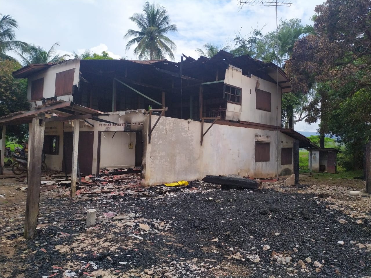 ຫຼັງຈາກນັ້ນມື້ຕໍ່ມາເຈົ້າໜ້າທີ່ຕຳຫຼວດສະກັດກັ້ນ ແລະຕ້ານອັກຄີໄພ ປກສ ແຂວງວຽງຈັນ ໄດ້ສົມທົບກັບພາກສ່ວນທີ່ກ່ຽວຂ້ອງລົງກວດກາຊັນນະສູດສະຖານທີ່ເກີດເຫດ ເຫັນວ່າມີຊັບສິນ ແລະເຄື່ອງຂອງທີ່ມີຄ່າໄດ້ຮັບຜົນເສຍຫາຍຄື: ເຮືອນບູຮານ 1 ຫຼັງ, ລົດໄຖນາ 1 ຄັນ, ເຂົ້າເປືອກ 13 ເປົ໋າ, ເຮືອນ 2 ຊັ້ນ 1 ຫຼັງ (ຖືກໄຟລາມໄປໄໝ້ສ່ວນຫຼາຍ) ປະເມີນມູນຄ່າຜົນເສຍຫາຍໃນເບື້ອງຕົ້ນປະມານ 826,9 ລ້ານກີບ ສ່ວນສາເຫດຂອງການເກີດອັກຄີໄພໃນຄັ້ງນີ້ແມ່ນບໍ່ສາມາດຢັ້ງຢືນໄດ້ວ່າເກີດຂຶ້ນຍ້ອນຫຍັງເນື່ອງຈາກບໍ່ມີຂໍ້ມູນຫຼັກຖານຊັດເຈນແຕ່ກໍ່ໂຊກດີບໍ່ມີຜູ້ໄດ້ຮັບບາດເຈັບ ແລະເສຍຊີວິດ.