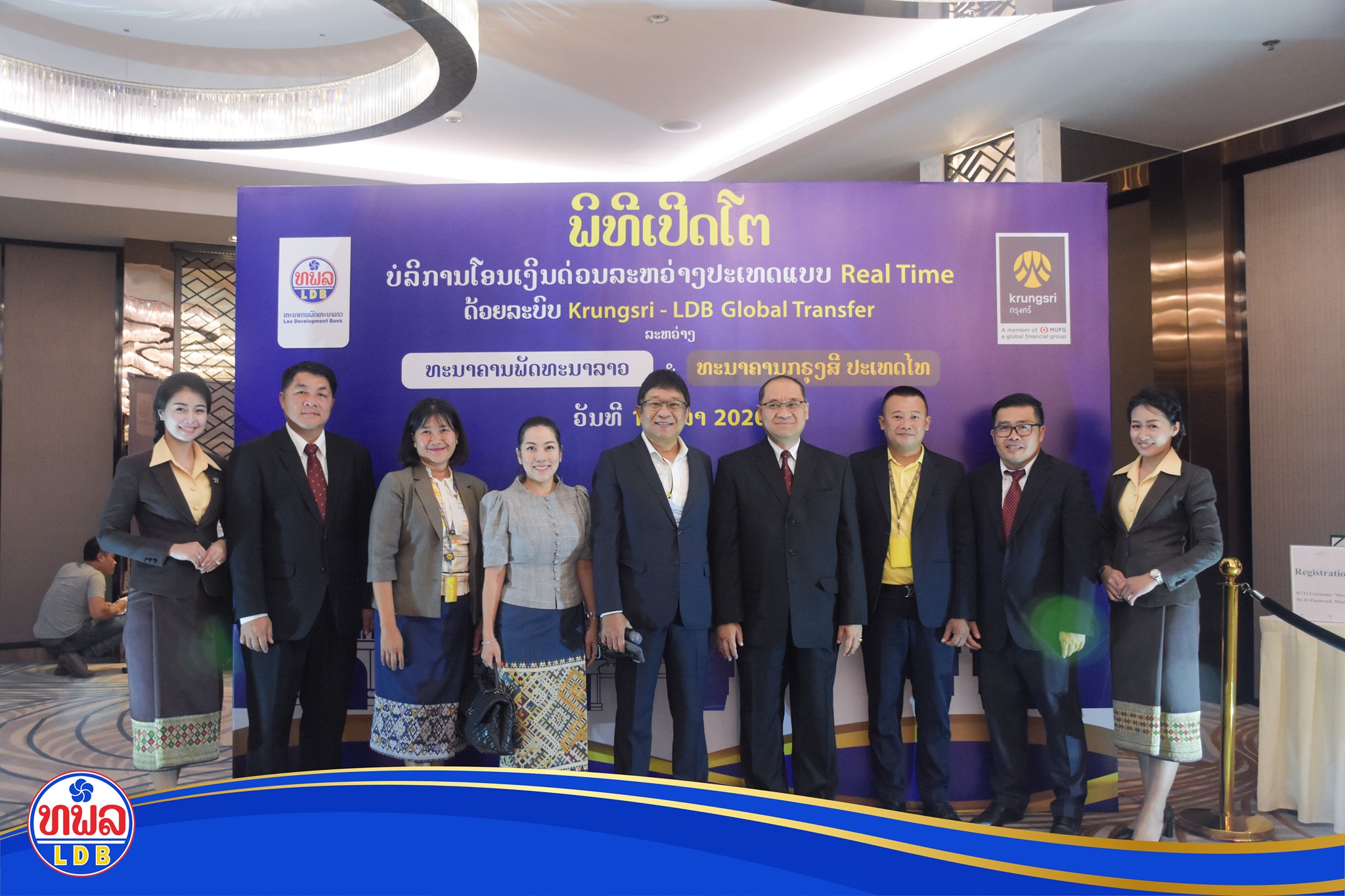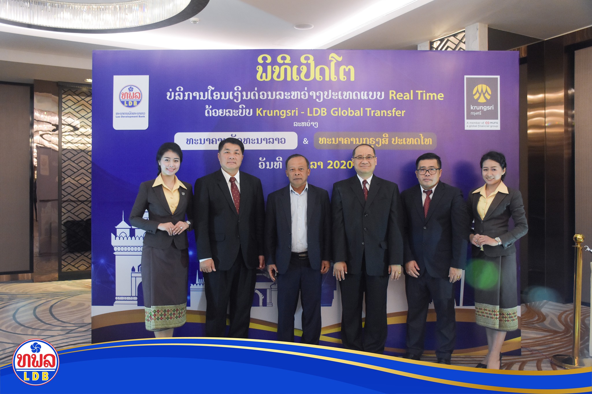 ທະນາຄານພັດທະນາລາວ(ທພລ) ແລະ ທະນາຄານກຸງສີອະຍຸດທະຍາ ມະຫາຊົນ ຈໍາກັດ ຮ່ວມກັນຈັດພິທີເປີດໂຕຢ່າງເປັນທາງການຜ່ານລະບົບປະຊຸມທາງໄກ (Virtual conference) “ການໃຫ້ບໍລິການລະບົບໂອນເງິນລະຫວ່າງປະເທດແບບ Real Time”ຂຶ້ນໃນວັນທີ 12 ຕຸລາ 2020 ທີ່ໂຮງແຮມຄຣາວພລາຊາ ນະ ຄອນຫຼວງວຽງຈັນ ໂດຍການໃຫ້ກຽດເຂົ້າຮ່ວມຂອງທ່ານ ພຸດທະໄຊ ສີວິໄລ ຮອງຜູ້ວ່າການທະນາຄານແຫ່ງ ສປປ ລາວ, ປະທານສະພາບໍລິຫານ ທພລ; ທ່ານອາຄົມ ປຣະເສີດ ຜູ້ອຳນວຍການ ທພລ ພ້ອມຄະນະ; ສຳລັບຝ່າຍໄທແມ່ນຈັດຂຶ້ນທີ່ບາງກອກປະເທດໄທໂດຍການໃຫ້ກຽດເຂົ້າຮ່ວມຂອງ ທ່ານ ນາງ ບຸດສະກອນ ທິລາປັນຍາໄຊ ຜູ້ອໍານວຍການອາວຸໂສຝ່າຍນະໂຍບາຍລະບົບການຊໍາລະເງິນ, ທະນາຄານແຫ່ງປະເທດໄທ; ທ່ານ ແດນ ຮາໂຊໂນ ຄະນະກໍາມະທິການຜູ້ບໍລິຫານທະນາຄານກຣຸງ ສີອາຍຸດທະຍາ ມະຫາຊົນ ຈໍາກັດ ປະເທດໄທພ້ອມຄະນະ.