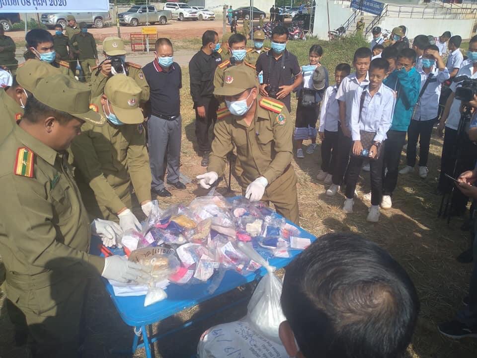 ຢາທີ່ນໍາມາທໍາລາຍໃນຄັ້ງນີ້ປະກອບມີຢາບ້າ 57 ພັນກວ່າເມັດ, ເຮໂລອິ່ນ 75 ກຣາມ, ຢາໄອ 23,57 ກຣາມ, ຢາຝິ່ນ 1,3 ກິໂລກຣາມ, ແປ້ງຝຸ່ນທີ່ບໍ່ມີເຊື້ອຢາເສບຕິດເຈືອປົນ 103,8 ກິໂລກຣາມ, ແປ້ງທີ່ມີເຊື້ອຢາເສບຕິດປົນ 7,5 ກຣາມ, ໂອກາດດັ່ງກ່າວ ທ່ານ ຄຳໄຫຼ ສີປະເສີດ ພ້ອມດ້ວຍແຂກຖືກເຊີນຮ່ວມຈູດທຳລາຍຢາເສບຕິດຖີ້ມຢ່າງເປັນທາງການ.