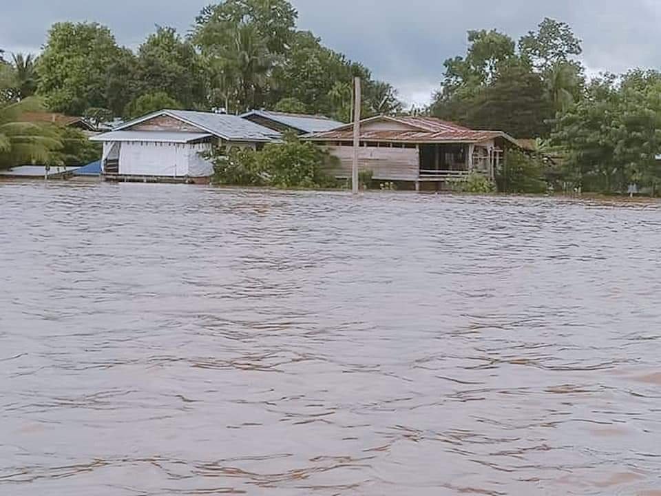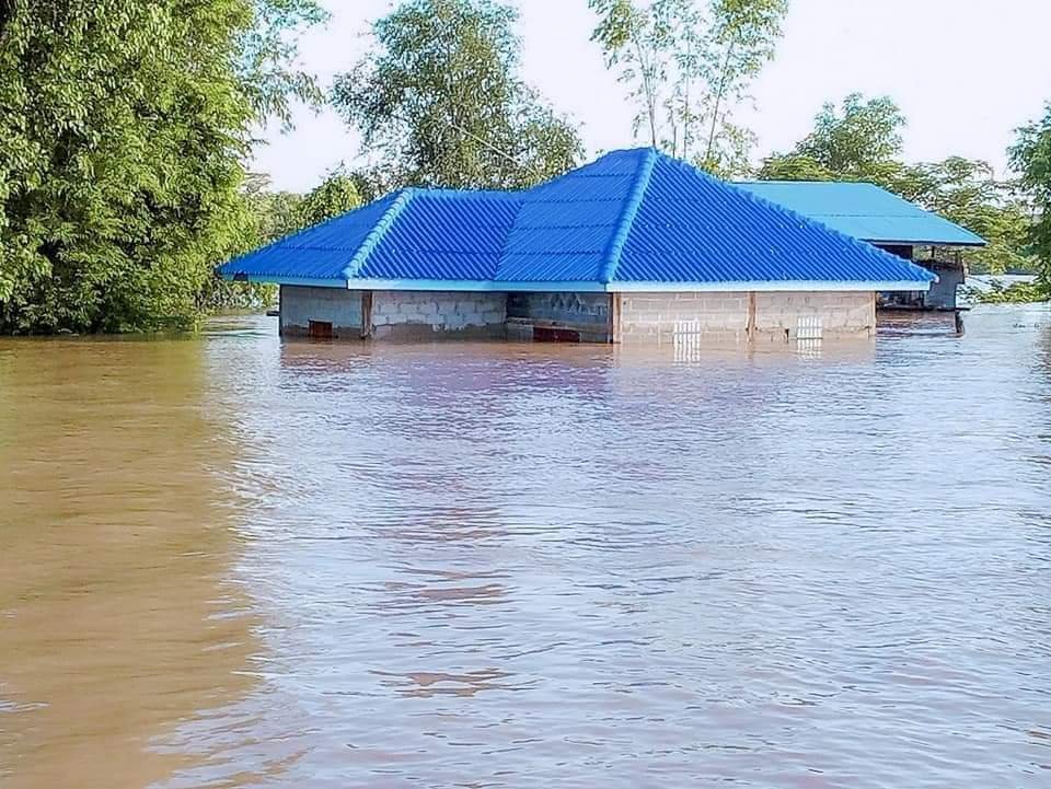 ຕາ, ສວນພືດຜັກຕ່າງໆ 52 ເຮັກຕາ, ໜອງປາ 274 ໜອງ. ຜົນກະທົບທາງດ້ານສາທາລະນະສຸກ: ສຸກສາລາຖືກນໍ້າຖ້ວມມີ 4 ແຫ່ງ,ມີພະຍາດເກີດຂຶ້ນ 1.642 ກໍລະນີໃນນັ້ນຖອກທ້ອງ 67 ກໍລະນີ, ໝວດອາການຄ້າຍຄືໄຂ້ຫວັດ 439 ກໍລະນີ, ພະຍາດຜິວໜັງ(ຕີນເປື່ອຍ) 1.070 ກໍລະນີ, ພະຍາດຕາແດງ 66 ກໍລະນີ; ມີວິດຖ່າຍຖືກນ້ຳຖ້ວມ 1.135 ໜ່ວຍ; ນໍ້າສ້າງ ແລະ ນໍ້າບາດານທີ່ຖືກນໍ້າຖ້ວມ 492 ບໍ່; ໂຮງຮຽນປະຖົມຖືກຖ້ວມທັງໝົດ 21 ແຫ່ງ, ໂຮງຮຽນ ມຕ/ມປ2 ແຫ່ງ. ນອກນີ້ຍັງມີເສັ້ນທາງ, ເສົາໄຟຟ້າ ແລະລະບົບຊົນລະປະທານປະຕູນໍ້າຖືກນໍ້າຖ້ວມເສຍຫາຍຈໍານວນໜຶ່ງສ່ວນມູນຄ່າຄວາມເສຍ ຫາຍຄະນະກໍາມະການຕ້ານໄພພິບັດຂັ້ນເມືອງກໍາລັງຂຸ້ນຂ້ຽວເກັບກໍາຂໍ້ມູນ ແລະໃຫ້ການຊ່ວຍເຫຼືອເບື້ອງຕົ້ນເຊັ່ນ: ໄດ້ມອບໝີ່, ນໍ້າດື່ມ,ປ໋ອງປາ, ເຂົ້າສານ ແລະເຄື່ອງໃຊ້ທີ່ຈໍາເປັນຕ່າງໆ.