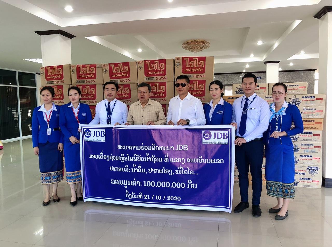 ໃນວັນທີ 21 ຕຸລາ 2020 ທີ່ສໍານັກງານອົງການປົກຄອງແຂວງສະຫວັນນະເຂດທະນາຄານຮ່ວມພັດທະນາ ຫຼື JDB ໄດ້ມອບເຄື່ອງຊ່ວຍເຫຼືອໃຫ້ຜູ້ປະສົບໄພນໍ້າຖ້ວມທີ່ແຂວງສະຫວັນນະເຂດຊຶ່ງມອບໂດຍທ່ານ ຖາວອນ ອ້ວນມາລາ ຄະນະຜູ້ບໍລິຫານທະນາຄານຮ່ວມພັດທະນາ,ໄດ້ນໍາເອົາເຄື່ອງຊ່ວຍເຫຼືອມາຊ່ວຍຜູ້ປະສົບໄພນໍ້າຖ້ວມ.