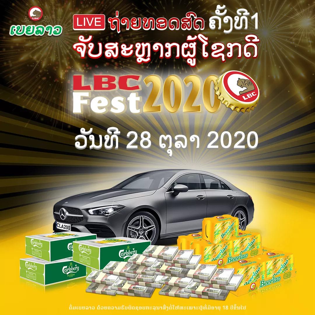 ເພື່ອເປັນການຮ່ວມສະຫລອງສປປລາວຄົບຮອບ 45 ປີ ວັນທີ 28 ຕຸລາຜ່ານມາ ບໍລິສັດ ເບຍລາວ ຈຳກັດ ໄດ້ຈັດກິດຈະກຳມອບໂຊກຄັ້ງຍິ່ງໃຫຍ່ພາຍໃຕ້ຊື່ໂຄງການ “LBC Fest 2020” ໃນນີ້ມີລາງວັນເງິນສົດ 10 ລ້ານ ຈຳນວນ10 ລາງວັນ, ລາງວັນ 5 ລ້ານກີບຈຳນວນ 20 ລາງວັນ, ລາງວັນເບຍຄາຣສະເບີກກະປ໋ອງ 1 ແກັດ ຈຳນວນ 10 ລາງວັນ, ເບຍລາວແພັກ 6 ຈຳນວນ 20 ໂດຍເປັນກຽດການຈັບສະຫຼາກຂອງ ທ່ານ ຈັນສະໝອນ ຜ່ອງຈັນທາ ອຳນວຍການກຸ່ມຜະລິດຕະພັນ ເບຍ.
