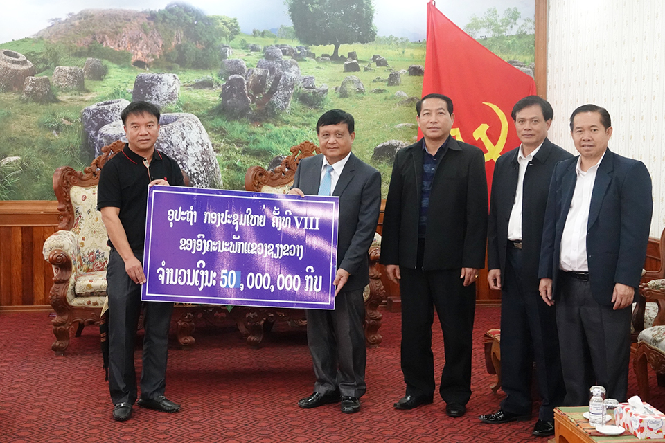 ໂອກາດດັ່ງກ່າວອາດີດເຈົ້າແຂວງໆຊຽງຂວາງກໍ່ໄດ້ກ່າວສະແດງຄວາມຊົມເຊີຍ ແລະຮູ້ບຸນຄຸນຕໍ່ການອຸປະຖຳຊ່ວຍເຫຼືອໃນຄັ້ງນີ້ເຮັດໃຫ້ການດຳເນີນກອງປະຊຸມໃຫຍ່ຄັ້ງທີ VIII ຂອງອົງຄະນະພັກແຂວງຊຽງຂວາງສຳເລັດໄປດ້ວຍໝາກຜົນອັນຈົບງາມ.