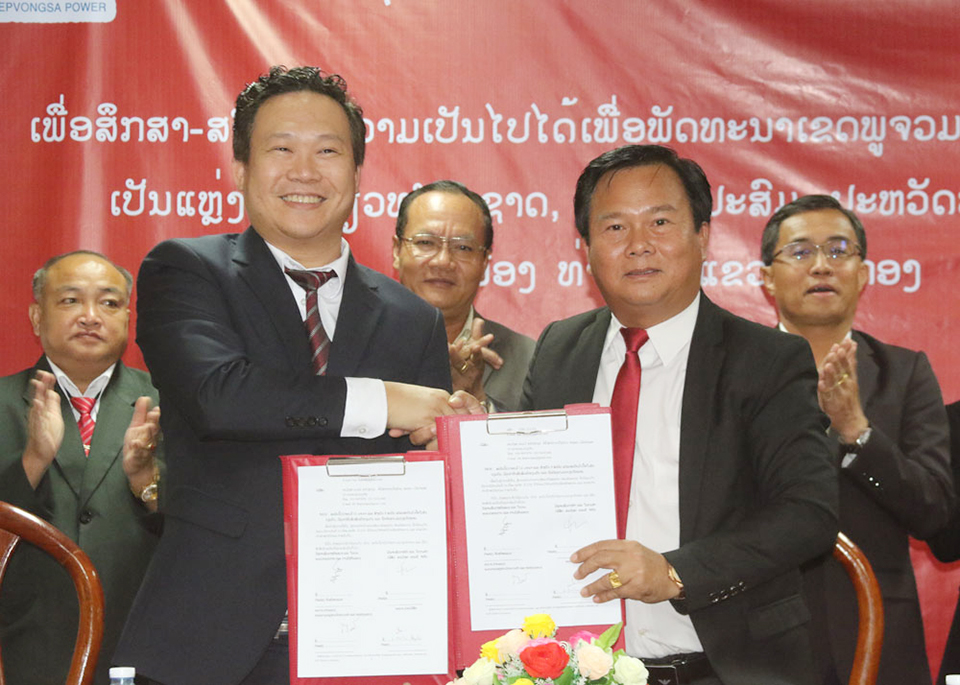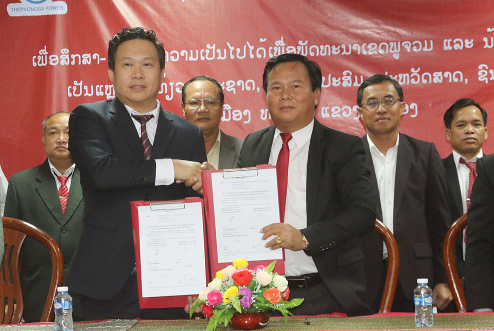 ສ່ວນບໍລິສັດແມ່ນເພື່ອສຶກສາ-ສໍາ ຫຼວດຄວາມເປັນໄປໄດ້ເພື່ອກ້າວໄປສູ່ການພັດທະນາເຂດພູຈວມ ແລະນໍ້າຕົກຕາດໄຟໄໝ້ເປັນແຫຼ່ງທ່ອງທ່ຽວທໍາມະຊາດ, ກະສິກໍາປະສົມ, ປະຫວັດສາດ, ຊົນເຜົ່າຂອງເມືອງທ່າແຕງ, ຊຶ່ງໄລຍະເວລາຂອງບົດບັນທຶກຄວາມເຂົ້າໃຈສະບັບນີ້ແມ່ນ 12 ເດືອນ, ໃນນັ້ນໜ້າວຽກຂອງບໍລິສັດທີ່ຈະຕ້ອງໄດ້ປະຕິບັດຄື: ສຶກສາສໍາຫຼວດ, ສ້າງບົດວິພາກເສດຖະກິດ-ເຕັກນິກ, ບົດປະເມີນຜົນກະທົບຕໍ່ສິ່ງແວດລ້ອມ, ບົດປະເມີນຜົນກະທົບຕໍ່ສັງຄົມ, ແຜນການຄຸ້ມຄອງ ແລະຕິດ ຕາມກວດກາດ້ານສິ່ງແວດລ້ອມ, ແຜນການຄຸ້ມຄອງ ແລະ ຕິດຕາມກວດກາດ້ານສັງຄົມໂດຍຫຼີກເວັ້ນຜົນກະທົບພ້ອມຍົກສູງຜົນປະໂຫຍດຂອງປະຊາຊົນບັນດາ ເຜົ່າທີ່ນອນໃນເຂດຂອງໂຄງການດັ່ງກ່າວ.