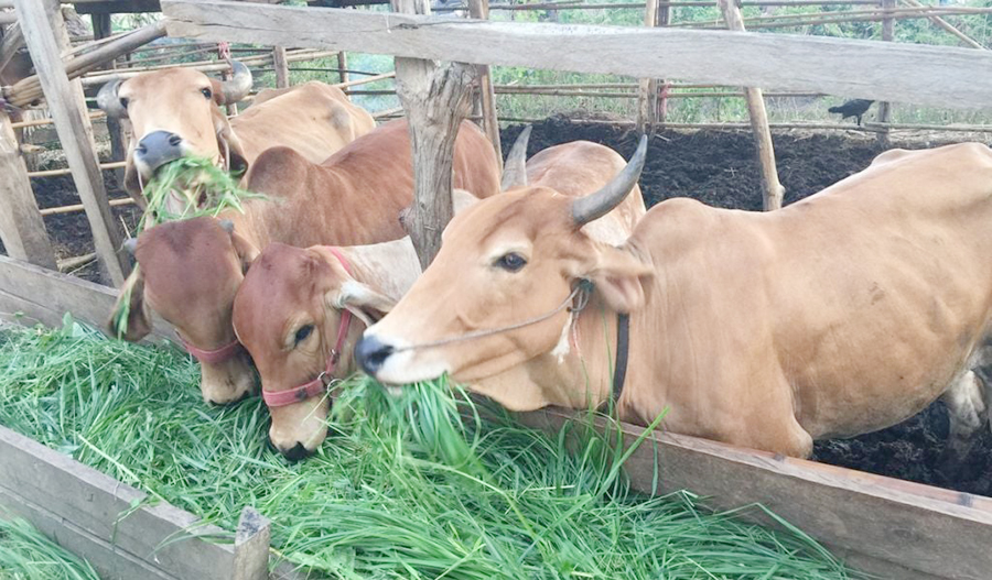 ໂດຍໄດ້ຮັບການຊີ້ນຳຢ່າງໃກ້ຊິດຕິດແທດຈາກວິຊາການຂັ້ນເມືອງ, ຂັ້ນແຂວງ, ບວກກັບຄວາມຕັດສີນໃຈສູງຂອງທ່ານ ສົມສະອາດ ພີວໂພຈັນ ຈຶ່ງໄດ້ລົງມືປູກຫຍ້າເພື່ອເປັນອາຫານສັດແລ້ວຕັດມາໃຫ້ສັດກິນເພື່ອປະຢັດແຮງງານ ແລະ ຫຍ້າກໍສາມາດຂະຫຍາຍຕົວໄດ້ດີພຽງພໍກັບສັດລ້ຽງຈຳນວນຫຼາຍພ້ອມກັນນັ້ນກໍໄດ້ເກັບມ້ຽນເຟືອງແຫ້ງໄວ້ໃຫ້ງົວໃນລະດູຫຍ້າມີໜ້ອຍ, ນອກຈາກນັ້ນຍັງໄດ້ເຈາະນໍ້າບາດານເພື່ອເປັນແຫຼ່ງນໍ້າສຳລັບຫົດຫຍ້າໃນລະດູແລ້ງດ້ວຍຫົວສິດຢ່າງເປັນລະບົບ, ພ້ອມນັ້ນຍັງໄດ້ປູກຫຍ້າ (ຫຍ້າລູຊີ) ເພື່ອປ່ອຍໃຫ້ສັດກິນ ແລະສ້າງເງື່ອນໄຂໃຫ້ສັດໄດ້ອອກກຳລັງກາຍໂດຍໄດ້ປ່ອຍໃຫ້ສັດອອກກິນຫຍ້າຕາມເດີ່ນສອງ-ສາມຄັ້ງຕໍ່ອາທິດ, ນອກຈາກຫຍ້າເປັນອາຫານສຳລັບສັດແລ້ວຍັງໄດ້ນຳໃຊ້ຂີ້ເຫຼົ້າເພື່ອເປັນອາຫານເສີມຕື່ມອີກ; ເພື່ອເປັນການຮັກສາສຸຂະພາບຂອງສັດທຸກໆປີໄດ້ສັກຢາກັນພະຍາດສັດ 2 ຄັ້ງຄື: ຕົ້ນລະດູຝົນ ແລະຕົ້ນລະດູໜາວ.
