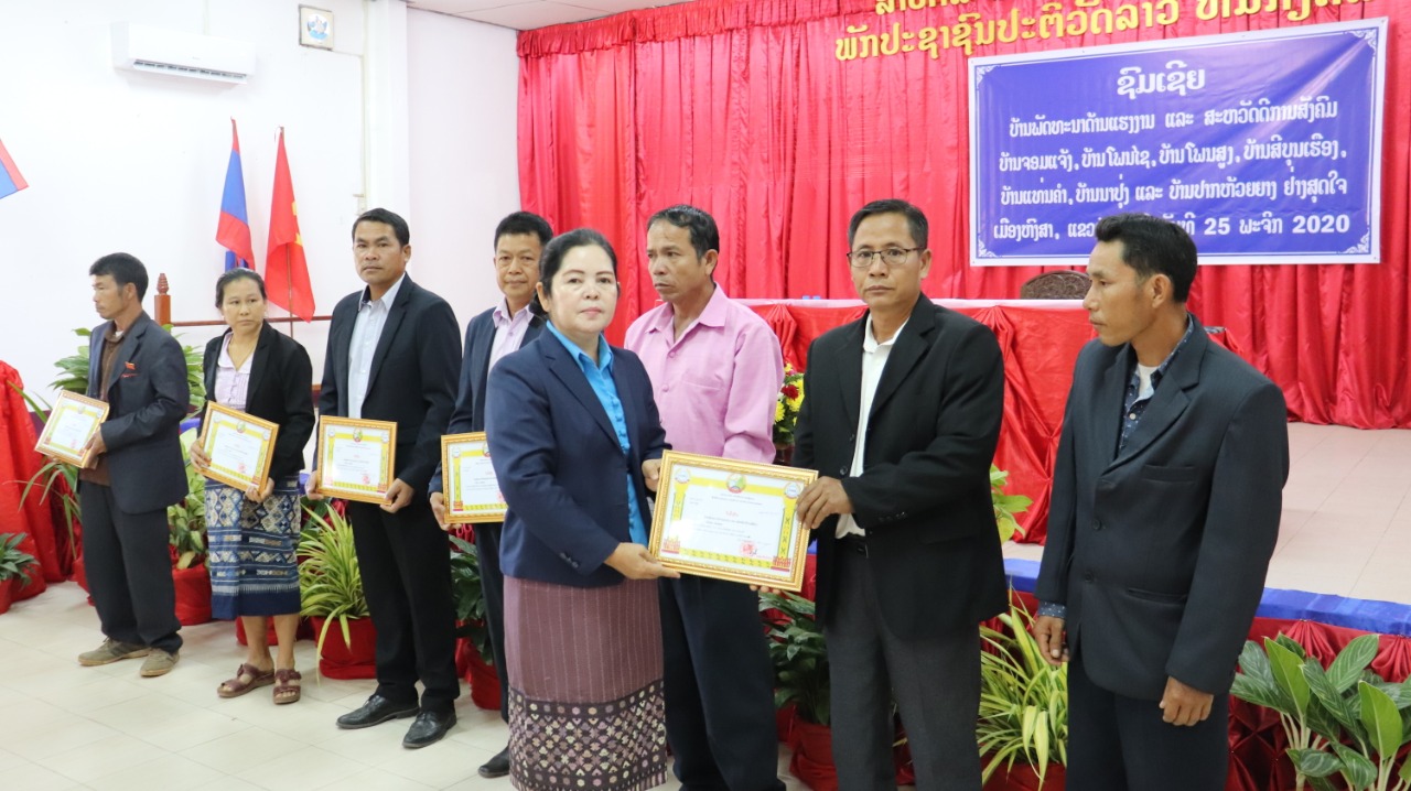 ວັນທີ 25 ພະຈິກ 2020 ຫ້ອງການແຮງງານ ແລະສະຫວັດດີການສັງຄົມ ເມືອງຫົງສາ ແຂວງໄຊຍະບູລີ ໄດ້ຈັດພິທີປະກາດຮັບຮອງເອົາ 7 ບ້ານເປັນບ້ານ ພັດທະ ນາດ້ານແຮງງານ ແລະສະຫວັດດີການສັງຄົມທີ່ສະໂມສອນຂອງເມືອງເຂົ້າຮ່ວມຂອງທ່ານ ນາງ ດາວວິນ ລາດຊະກິດ ຮອງເລຂາພັກເມືອງຫົງສາ, ມີຄະນະປະຈຳພັກເມືອງ, ກຳມະການພັກເມືອງ, ຫົວໜ້າ-ຮອງຫົວໜ້າ ຫ້ອງການອ້ອມຂ້າງເມືອງ, ມີພະນັກງານຂອງເມືອງ, ຂະແໜງການທີ່ກ່ຽວຂ້ອງພ້ອມດ້ວຍນາຍບ້ານ 7 ບ້ານຄື: ບ້ານຈອມແຈ້ງ, ບ້ານໂພນໄຊ, ບ້ານໂພນສູງ, ບ້ານສີບຸນເຮືອງ, ບ້ານແທ່ນຄຳ, ບ້ານນາປຸ່ງ ແລະ ບ້ານປາກຫ້ວຍຍາງເຂົ້າຮ່ວມ.