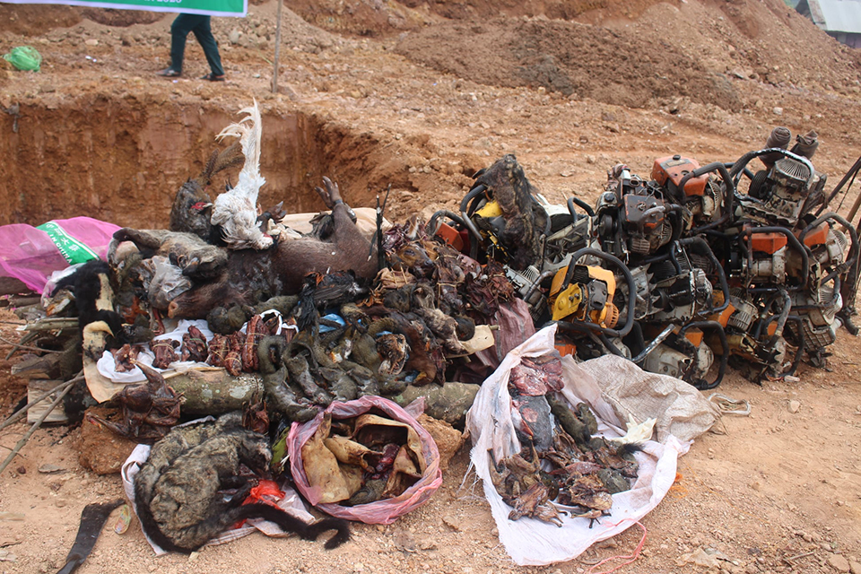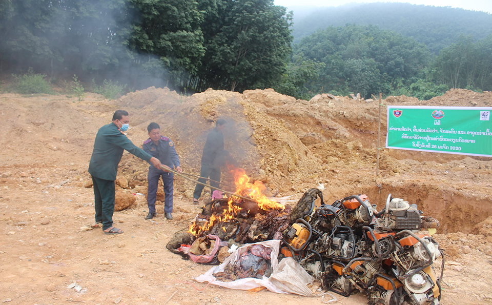ວັນທີ 26 ພະຈິກຜ່ານມາກອງກວດກາປ່າໄມ້ພະແນກກະສິກຳ ແລະປ່າໄມ້ແຂວງຫຼວງນໍ້າທາໄດ້ຈູດທໍາລາຍສັດປ່າ,ສີ້ນສ່ວນສັດປ່າ, ຈັກສະຕິນ ແລະອາວຸດລ່າເນື້ອທີ່ຍຶດໄດ້ມາຈາກປະຊາຊົນຜູ້ກະທຳຜິດຕໍ່ລະບຽບກົດໝາຍຢູ່ທີ່ສະໜາມຂີ້ເຫຍື້ອເມືອງຫຼວງນໍ້າທາເຂົ້າຮ່ວມຂອງ ທ່ານ ສຸລິວັນ ພົມມະຈິດ ຮອງຫົວໜ້າຫ້ອງວ່າການແຂວງ,ທ່ານ ໂພທິສັກ ພາພວມແພງ ຮອງກອງກວດກາປ່າໄມ້ພະແນກກະສິກຳ ແລະປ່າໄມ້ແຂວງມີຫົວໜ້າ-ຮອງຫົວໜ້າຂະແໜງການທີ່ກ່ຽວຂ້ອງຂອງແຂວງເມືອງສອງກອງບັນຊາການພ້ອມດ້ວຍອົງການປົກຄອງບ້ານແລະວິຊາການພາຍໃນກອງກວດກາປ່າໄມ້ເຂົ້າຮ່ວມ.