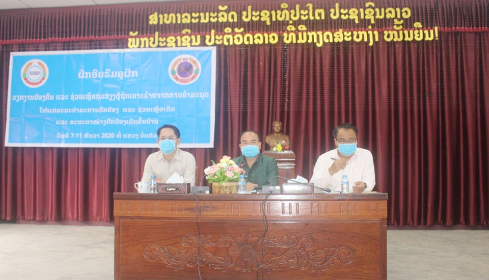 ກົມສັງຄົມສົງເຄາະກະຊວງແຮງງານ ແລະສະຫວັດດີການສັງຄົມຮ່ວມກັບກອງເລຂາຄະນະກຳມະການຕ້ານການຄ້າມະນຸດລະດັບຊາດໂດຍສົມທົບກັບພະແນກແຮງ ງານ ແລະສະຫວັດດີການສັງຄົມ ແລະ ປກສ ແຂວງບໍ່ແກ້ວຈັດກອງປະຊຸມຝຶກອົບຮົມກ່ຽວກັບວຽກງານປ້ອງກັນ ແລະຊ່ວຍເຫຼືອກຸ່ມສ່ຽງຜູ້ຖືກເຄາະຮ້າຍຈາກການຄ້າມະນຸດໃຫ້ແກ່ຄະນະກຳມະການປົກປ້ອງ ແລະຊ່ວຍເຫຼືອເດັກຂັ້ນເມືອງ ແລະຄະນະຕາໜ່າງປົກປ້ອງເດັກຂັ້ນບ້ານຈຳນວນ 8 ບ້ານຂອງ ເມືອງປາກທາ ແຂວງບໍ່ແກ້ວ.