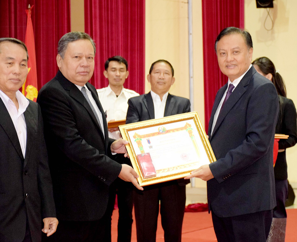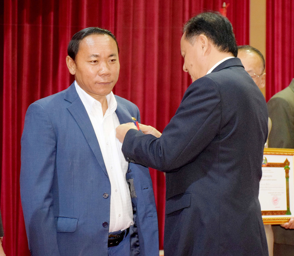ພິເສດໄດ້ມີການປະດັບຫຼຽນໄຊພັດທະນາຊັ້ນ II ໃຫ້ທ່ານ ສີພັນດອນ ມີໄຊ ທີ່ມີຜົນງານດີເດັ່ນໃນການປະກອບສ່ວນຊ່ວຍເຫຼືອວັດຖຸ-ທຶນຮອນເຂົ້າໃນການບູລະນະປະຕິ ສັງຂອນພາຍໃນພະທາດອີງຮັງລວມມູນຄ່າ 989 ລ້ານກີບ. ພ້ອມນີ້,ກໍ່ຍັງໄດ້ມີການຍ້ອງຍໍຜູ້ທີ່ປະກອບສ່ວນທຶນເຂົ້າໃນການຟື້ນຟູຜົນກະທົບຈາກໄພພິບັດ 2019 ໃນນີ້ໄດ້ປະດັບຫຼຽນໄຊພັດທະນາຊັ້ນ III ໃຫ້ ທ່ານ ເກຍ ອູ໊ສິດທິເດດ ປະທານບໍລິສັດອຸດົມຊັບກໍ່ສ້າງຂົວທາງຈຳກັດທີ່ໄດ້ປະກອບສ່ວນທຶນ 452 ລ້ານກີບ ແລະໄດ້ປະດັບຫຼຽນກາພັດ ທະນາໃຫ້ 3 ພາກສ່ວນຄື: ທ່ານ ຖາວອນ ອ້ວນມາລາ ປະທານທະນາຄານ JDB ທີ່ປະກອບສ່ວນເງິນ 291 ລ້ານກີບ, ກຸ່ມບໍລິສັດ AIFS ແລະບໍລິສັດ AIDC ເອເຊຍ ລົງທຶນ ພັດທະນາ ແລະກໍ່ສ້າງປະກອບສ່ວນໃນມູນຄ່າ 500 ລ້ານກີບ ແລະ ທ່ານ ເສິນ ເວິນ ຈຸ້ນ ຜູ້ອຳນວຍການບໍລິສັດຊັນເປເປີ້ໂຮນດິ້ງ ຈຳກັດ ປະ ກອບສ່ວນຈຳນວນ 50 ພັນໂດລາ. ເຊິ່ງໃຫ້ກຽດປະດັບຫຼຽນໃນພິທີໃນຄັ້ງນີ້ໂດຍທ່ານເຈົ້າແຂວງສະຫວັນນະເຂດ.