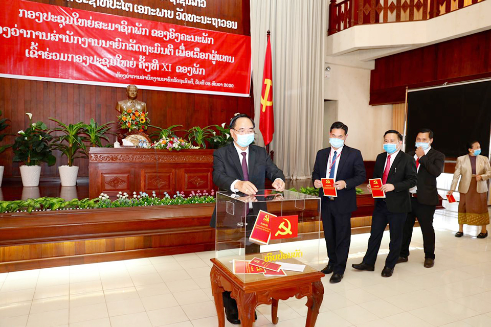 ໃນວັນທີ 8 ທັນວາ 2020 ຫ້ອງວ່າການສຳນັກງານນາຍົກລັດຖະມົນຕີ (ຫສນຍ) ໄດ້ຈັດກອງປະຊຸມໃຫຍ່ສະມາຊິກພັກເພື່ອເລືອກເອົາຜູ້ແທນເຂົ້າຮ່ວມກອງປະຊຸມໃຫຍ່ຄັ້ງທີ XI ຂອງພັກປະຊາຊົນປະຕິວັດລາວ, ໂດຍການເປັນປະທານຂອງສະຫາຍ ຄໍາເຈນ ວົງໂພສີ, ກຳມະການສູນກາງພັກ, ເລຂາຄະນະພັກຫ້ອງວ່າການສໍານັກງານນາຍົກລັດຖະມົນຕີ; ມີບັນດາສະຫາຍຄະນະພັກ ຫສນຍ, ຄະນະພັກຮາກຖານ, ຄະນະໜ່ວຍພັກ, ສະມາຊິກພັກສົມບູນ ແລະ ສະມາຊິກພັກອາວຸໂສບຳນານທົ່ວຫ້ອງວ່າການສໍານັກງານນາຍົກລັດຖະມົນຕີເຂົ້າຮ່ວມ 215 ສະຫາຍ.