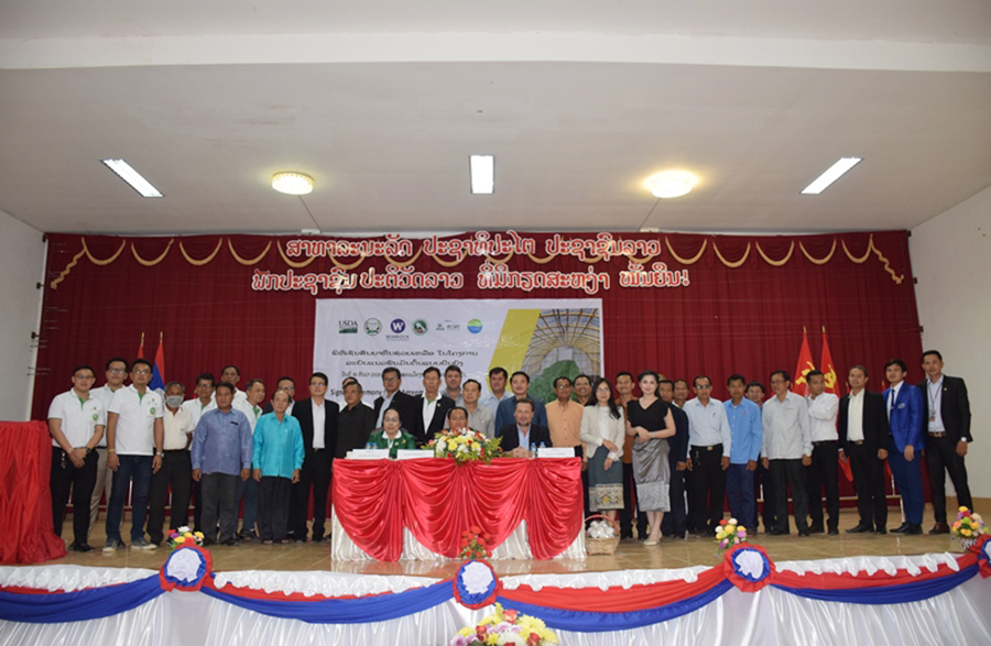 ຈາກນັ້ນນາງ ອິນແປງ ຊາມົນຕີ ປະທານສະມາຄົມມັນຕົ້ນລາວ ແລະທ່ານ ອາເລັກ ແດຮານ ຫົວໜ້າໂຄງການຄລິນກໍ່ໄດ້ລົງນາມເຊັນສັນຍາຮ່ວມມືຊ່ວຍເຫຼືອໃນມູນຄ່າ 661 ລ້ານກວ່າກີບ ຫຼືເທົ່າກັບ 73.494 ໂດລາ ໂດຍ ຊ້ອງໜ້າທ່ານ ຈັນສະໝອນ ພົມມະແສງ ຮອງຫົວໜ້າຄະນະໂຄສະນາອົບຮົມ ແຂວງສາລະວັນ ແລະພາກສ່ວນຕ່າງໆທີ່ກ່ຽວຂ້ອງ, ພິທີດັ່ງກ່າວໄດ້ຈັດຂຶ້ນໃນທ້າຍອາທິດທີ່ຜ່ານມາທີ່ຫ້ອງປະຊຸມສະໂມສອນຂອງເມືອງສາລະວັນ.