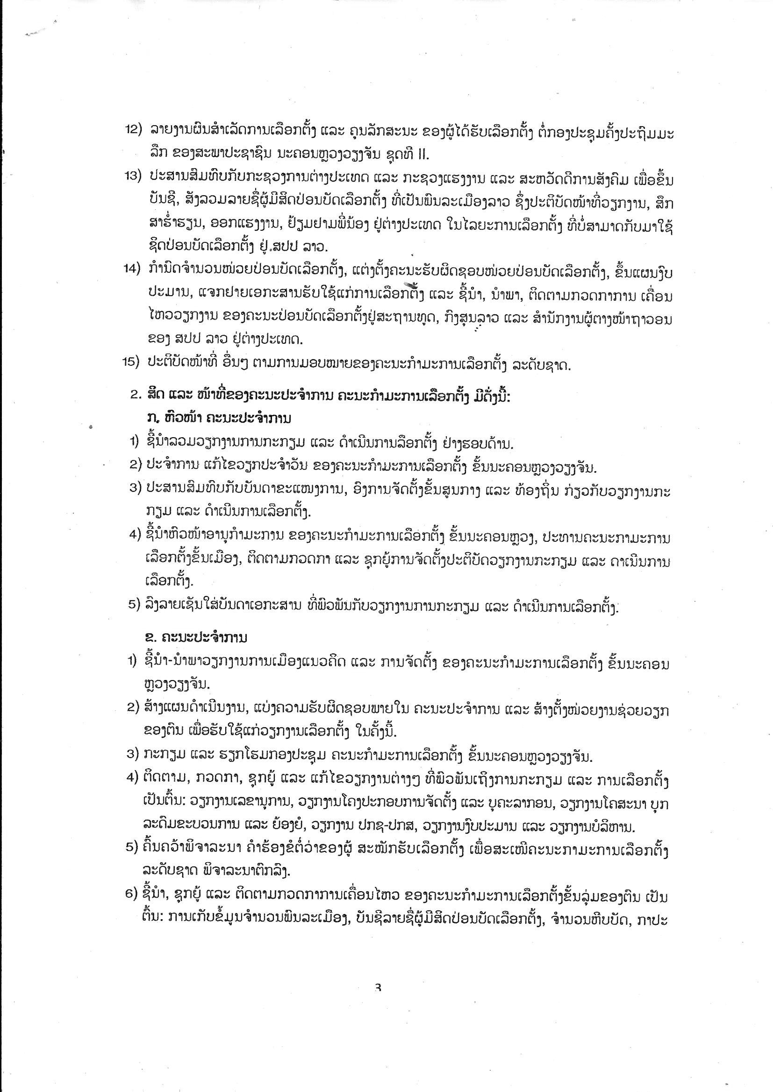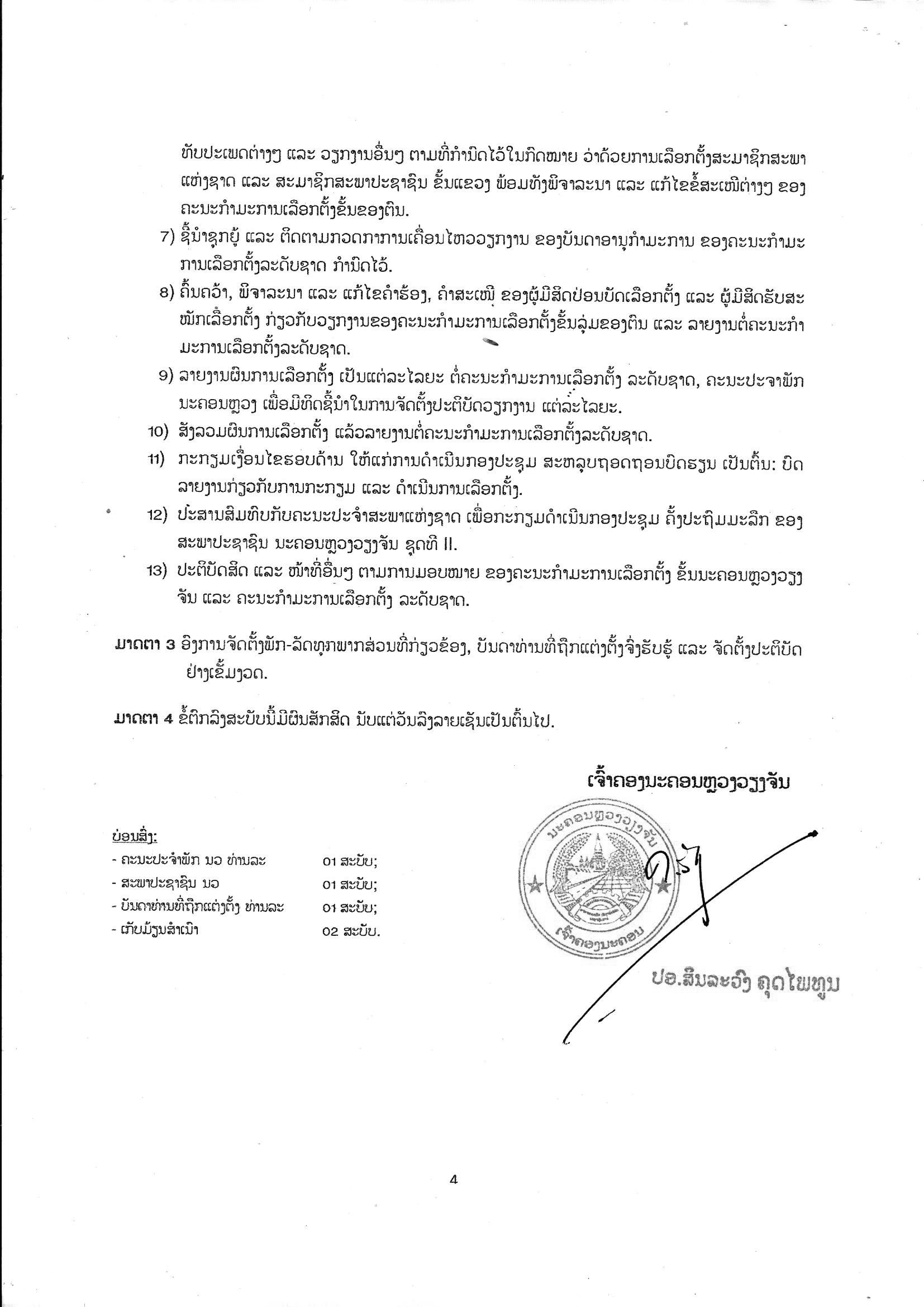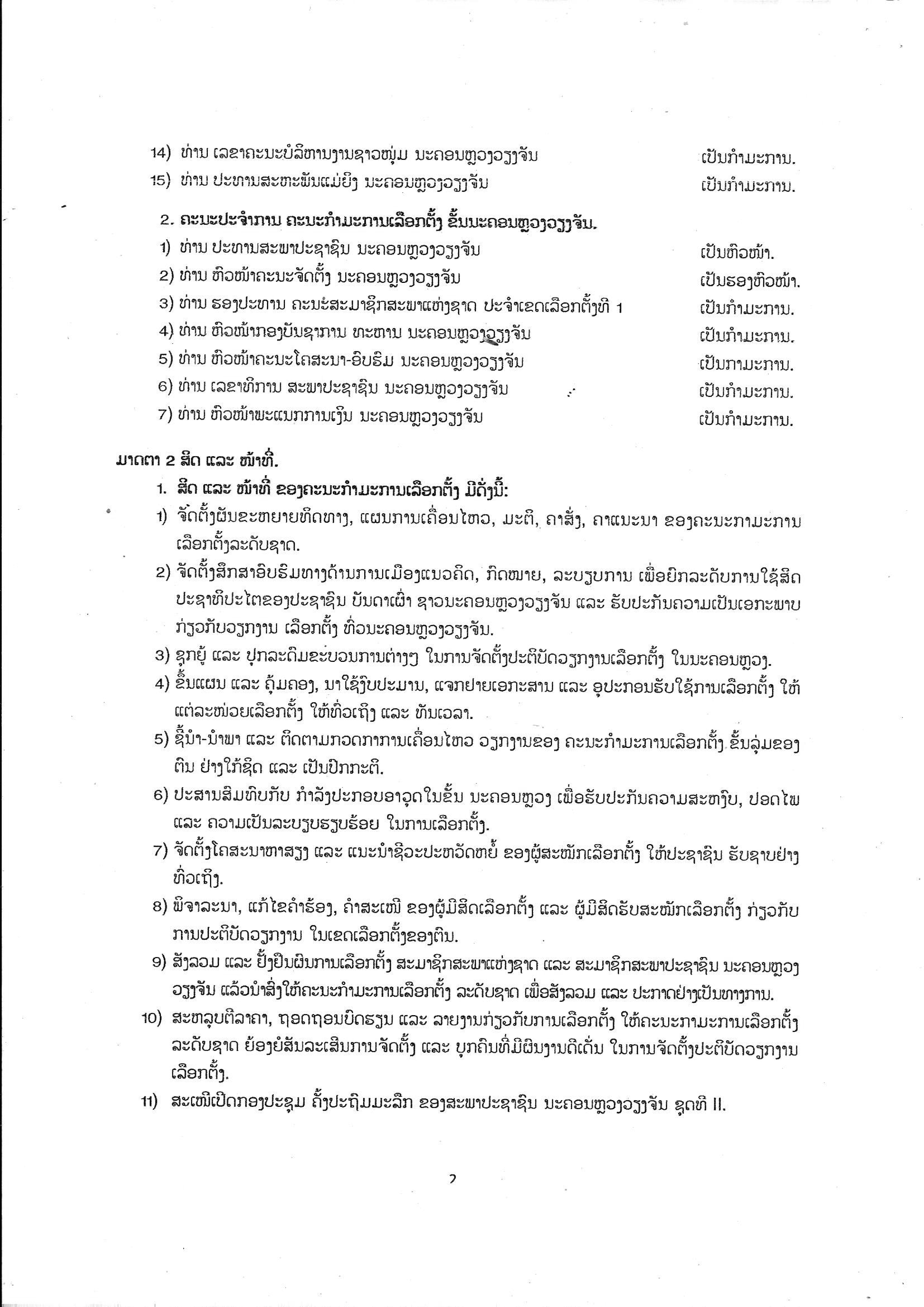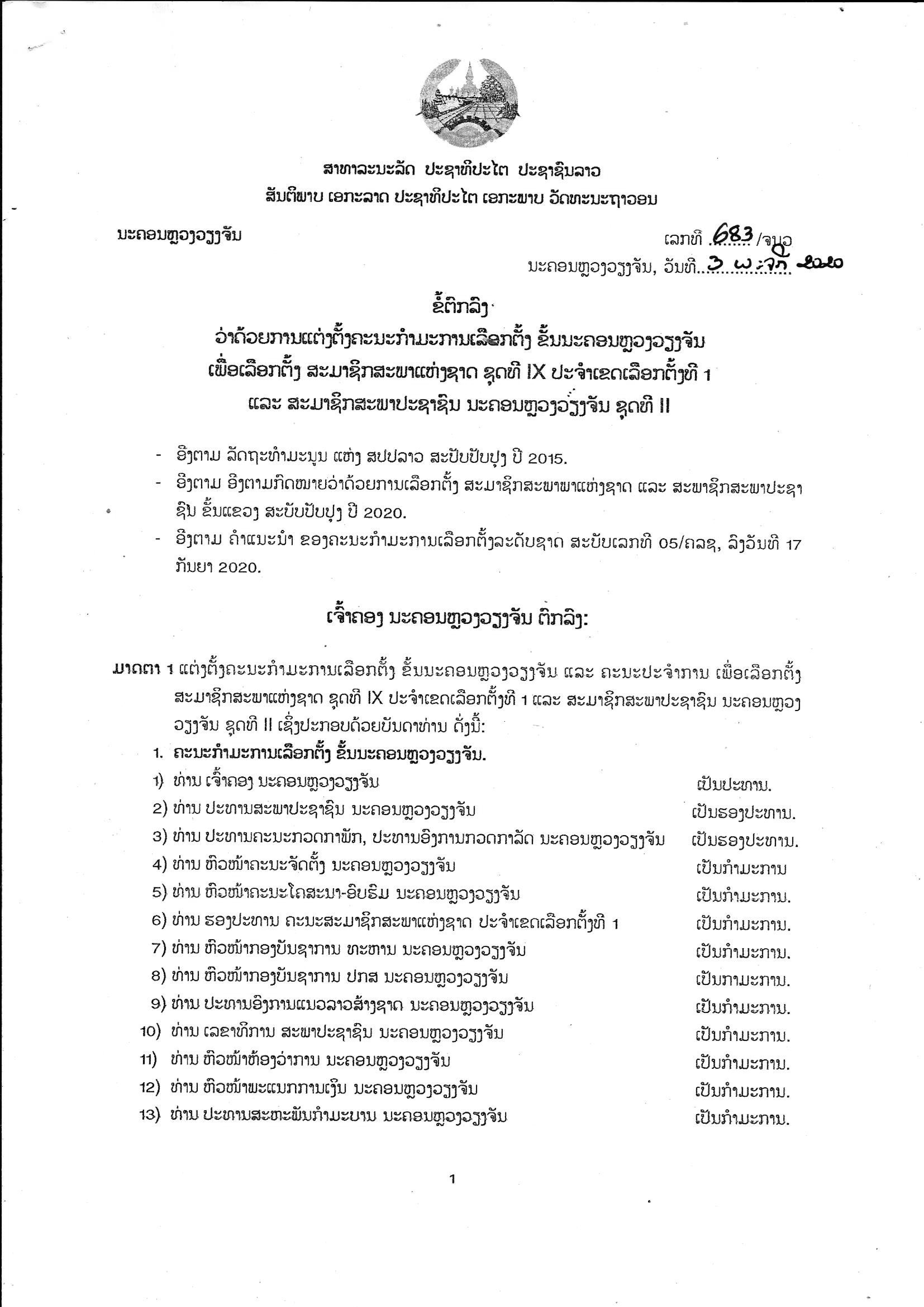 ວ່າດ້ວຍການແຕ່ງຕັ້ງຄະນະກຳມະການເລືອກຕັ້ງ ຂັ້ນນະຄອນຫຼວງວຽງຈັນເພື່ອເລືອກຕັ້ງ ສະມາຊິກສະພາແຫ່ງຊາດ ຊຸດທີ IX ປະຈຳເຂດເລືອກຕັ້ງທີ 1 ແລະສະມາ ຊິກສະພາປະຊາຊົນ ນະຄອນຫຼວງວຽງຈັນ ຊຸດທີ II