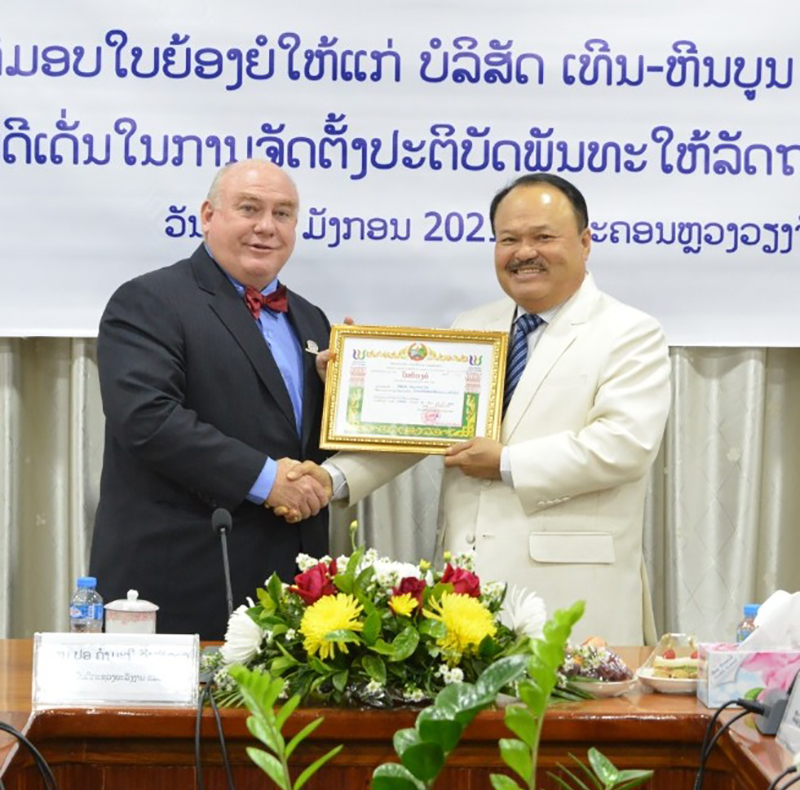 ພິທີມອບໃບຍ້ອງຍໍໃຫ້ແກ່ບໍລິສັດ ເທີນ-ຫີນບູນ ພາວເວີຈຳກັດ ທີ່ມີຜົນງານດີເດັ່ນໃນການຈັດຕັ້ງປະຕິບັດພັນທະໃຫ້ລັດຖະບານປະຈຳປີ 2019 ໄດ້ຈັດຂຶ້ນໃນວັນທີ 19 ມັງກອນຜ່ານມາທີ່ນະຄອນຫຼວງວຽງຈັນໂດຍທ່ານ ຄຳມະນີ ອິນທິລາດ ລັດຖະມົນຕີກະຊວງພະລັງງານ ແລະບໍ່ແຮ່ໃຫ້ກຽດມອບໃບຍ້ອງຍໍຄັ້ງນີ້ແລະທ່ານ ໂຣເບີດ ອາຣ ເອເລັນ ເຈອາ ຜູ້ອຳນວຍການໃຫຍ່ບໍລິສັດ ເທີນ-ຫີນບູນ ພາວເວີ ຈຳກັດເປັນຜູ້ຮັບ ຊຶ່ງມີທຸກພາກສ່ວນກ່ຽວຂ້ອງເຂົ້າຮ່ວມ.