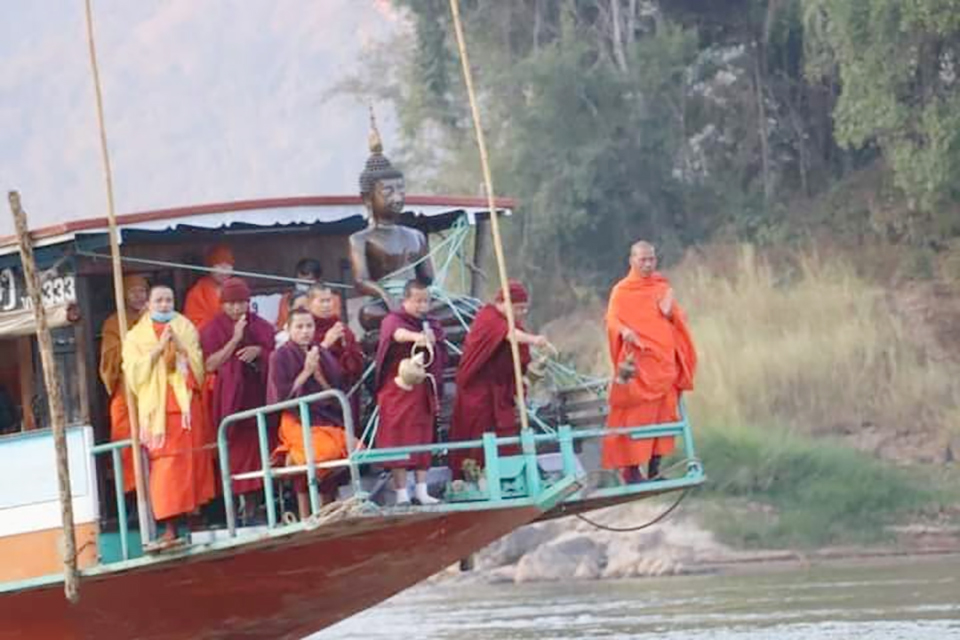 ຂະບວນອາຣາດທະນານິມົນໄດ້ເລີ່ມເຄື່ອນອອກຈາກວັດສີບຸນເຮືອງໃນຕອນເຊົ້າເວລາ 5:30 ໂມງ ໄປສູ່ທ່າເຮືອເມືອງຫ້ວຍຊາຍຈາກນັ້ນກໍ່ໄດ້ອັນເຊີນພຣະພຸດທະປາຣະມີຂຶ້ນສູ່ເຮືອ ແລະເລີ່ມລ່ອງເຮືອຈາກເມືອງຫ້ວຍຊາຍໄປຕາມລໍາແມ່ນໍ້າຂອງມຸ່ງໜ້າໄປສູ່ນະຄອນຫຼວງພະບາງຕະຫຼອດໄລຍະການລ່ອງເຮືອໄດ້ມີການສູດທະຍາຍມະ ຫາສະມັຍຍະສູດ ແລະທຳມະຈັກກັບປະວັຕຕະນະສູດ, ຂະບວນເຮືອໄດ້ເຖິງຄອນຫຼວງພະບາງທີ່ທ່າຫຼວງເວລາປະມານ 18 ໂມງ, ໂອກາດໄປເຖິງກໍ່ໄດ້ຮັບການຕ້ອນຮັບຈາກຄະນະບໍລິຫານວັດປ່າຜາໂອ ແລະ ພາກສ່ວນຂະແໜງການທີ່ກ່ຽວຂ້ອງຂອງນະຄອນຫຼວງພະບາງຈາກນັ້ນກໍ່ໄດ້ອັນເຊີນພຣະພຸດທະປາຣະມີໄປສູ່ວັດແສນສຸກຂາຣາມ.
